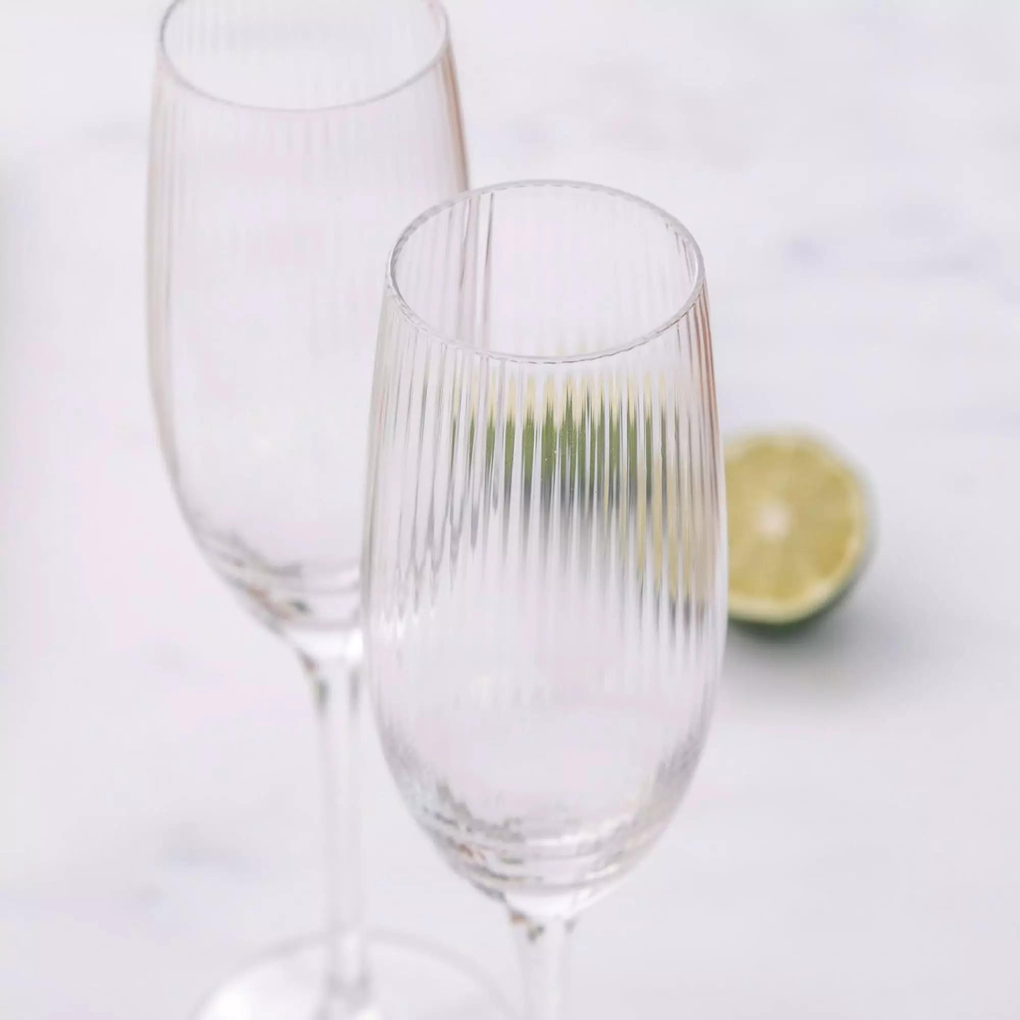 These ribbed champagne flutes are the finishing touch to complete your dinner party table. The subtle ribbed pattern catches the light beautifully – a modern and elegant design.