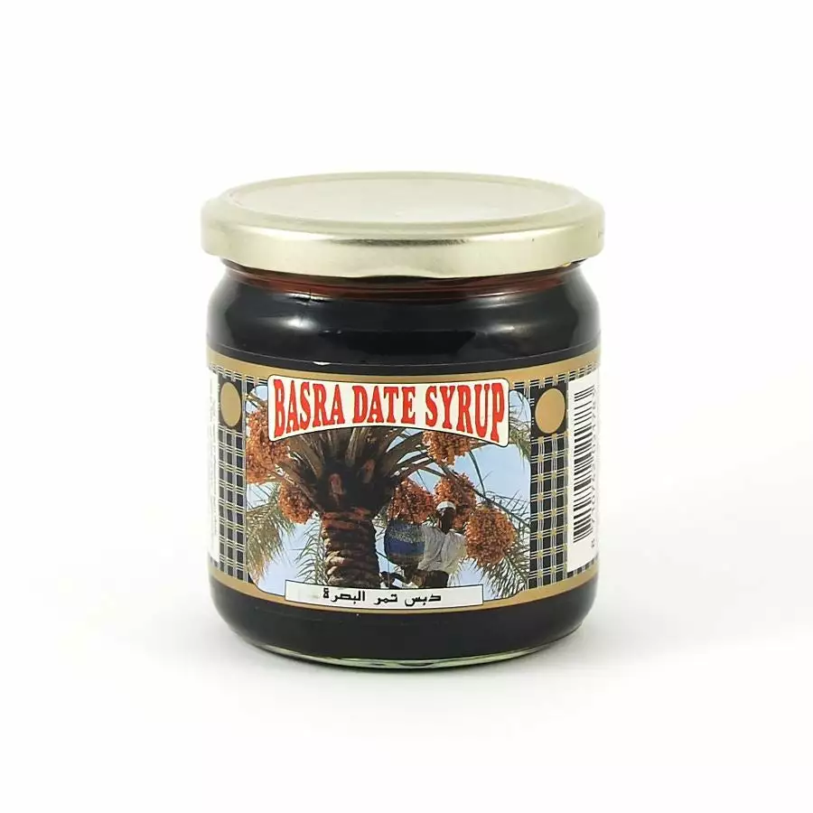 Basra date syrup, or date molasses, is made from 100% natural date juice. It has a rich datey sweetness, and is used widely in Middle Eastern cuisine. This Basra date syrup often forms the base of the popular drink ‘jallab‘ when mixed with a little rosewater and sparkling water. Date molasses for the treacly rich syrup.