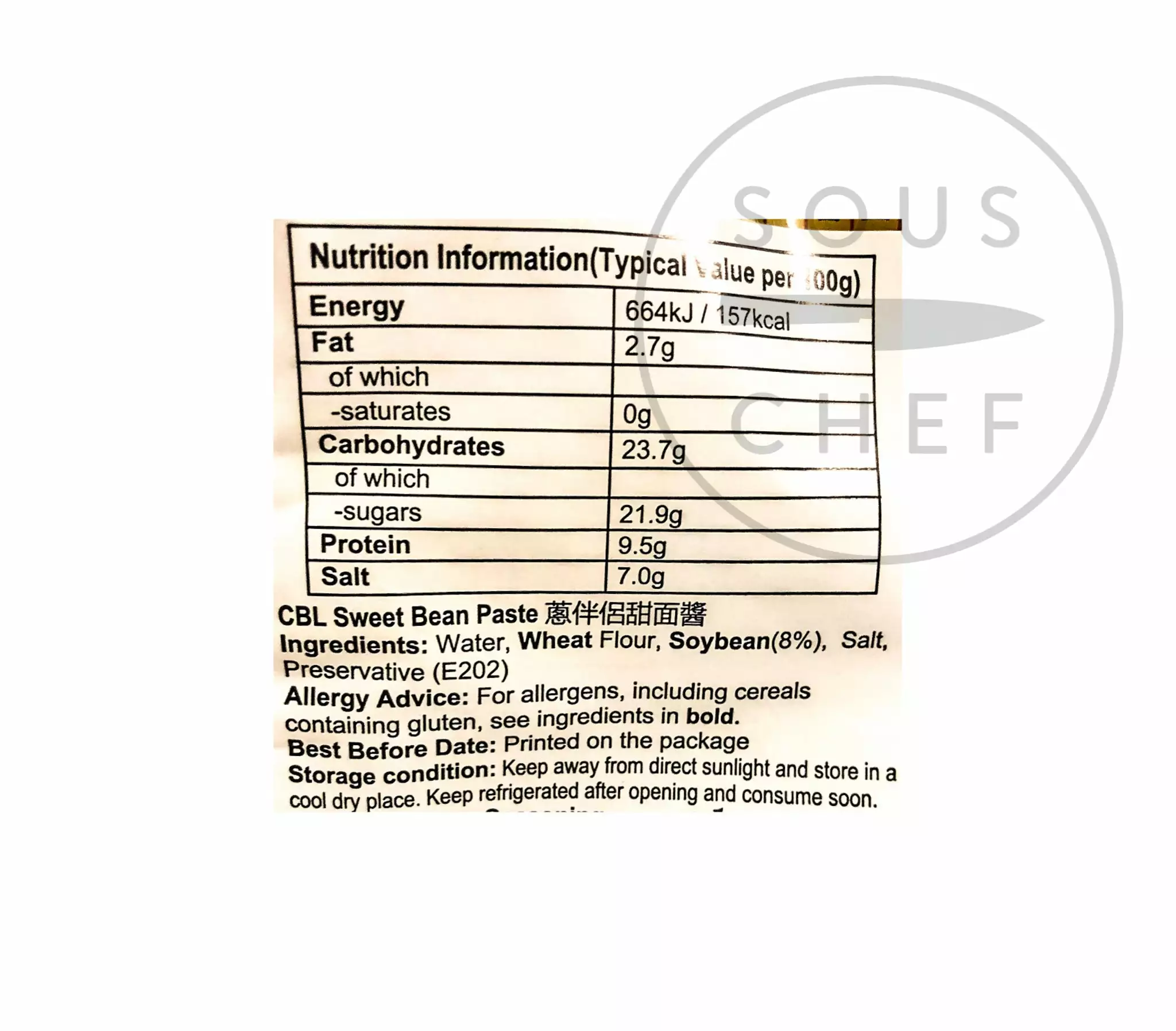 Ingredients: water, soybeans, wheat flour, salt, preservative E202.