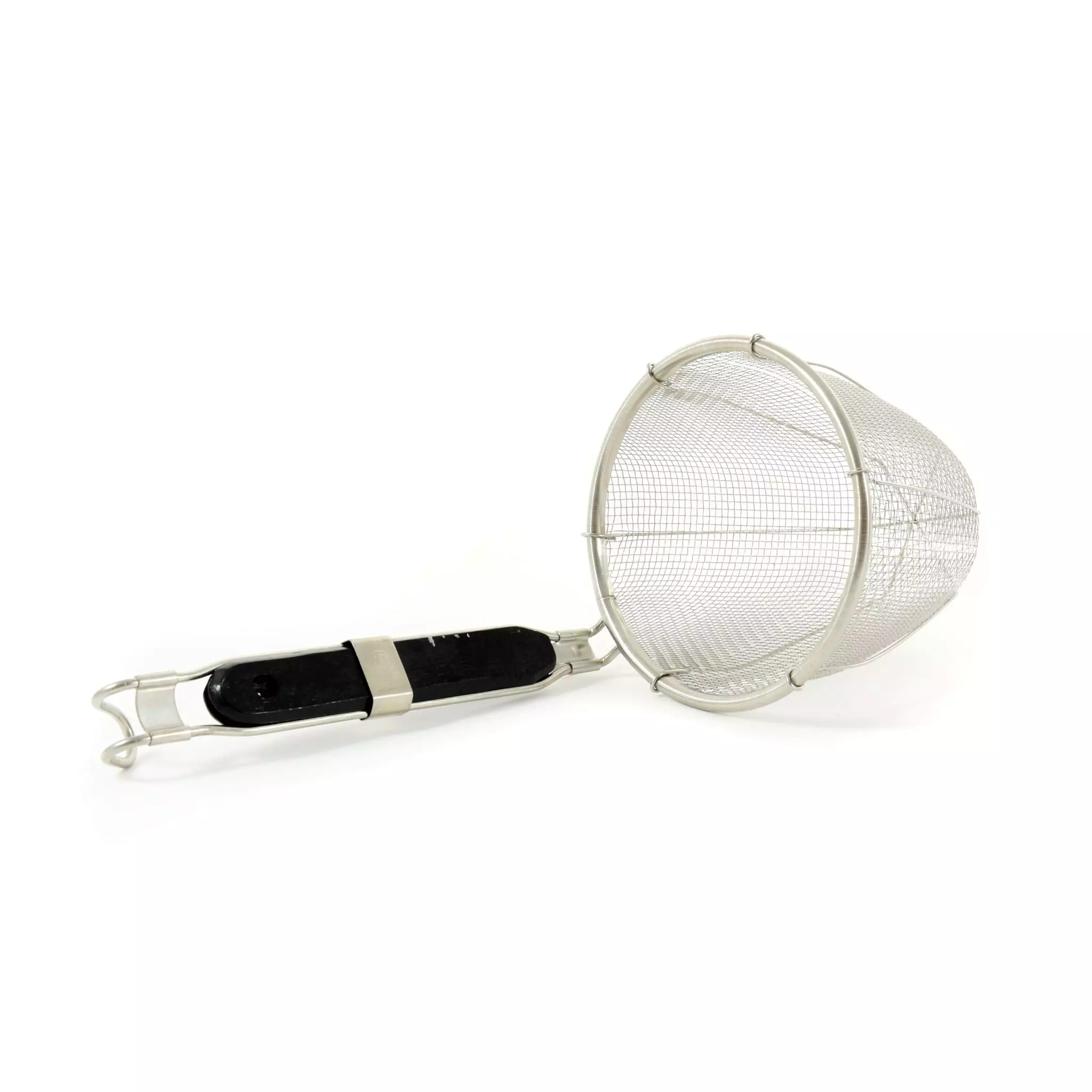 A Japanese-style wonton noodle strainer makes draining slippery noodles and wontons easy at home. The deep mesh colander is 13.5cm tall and can fit in a large pan.