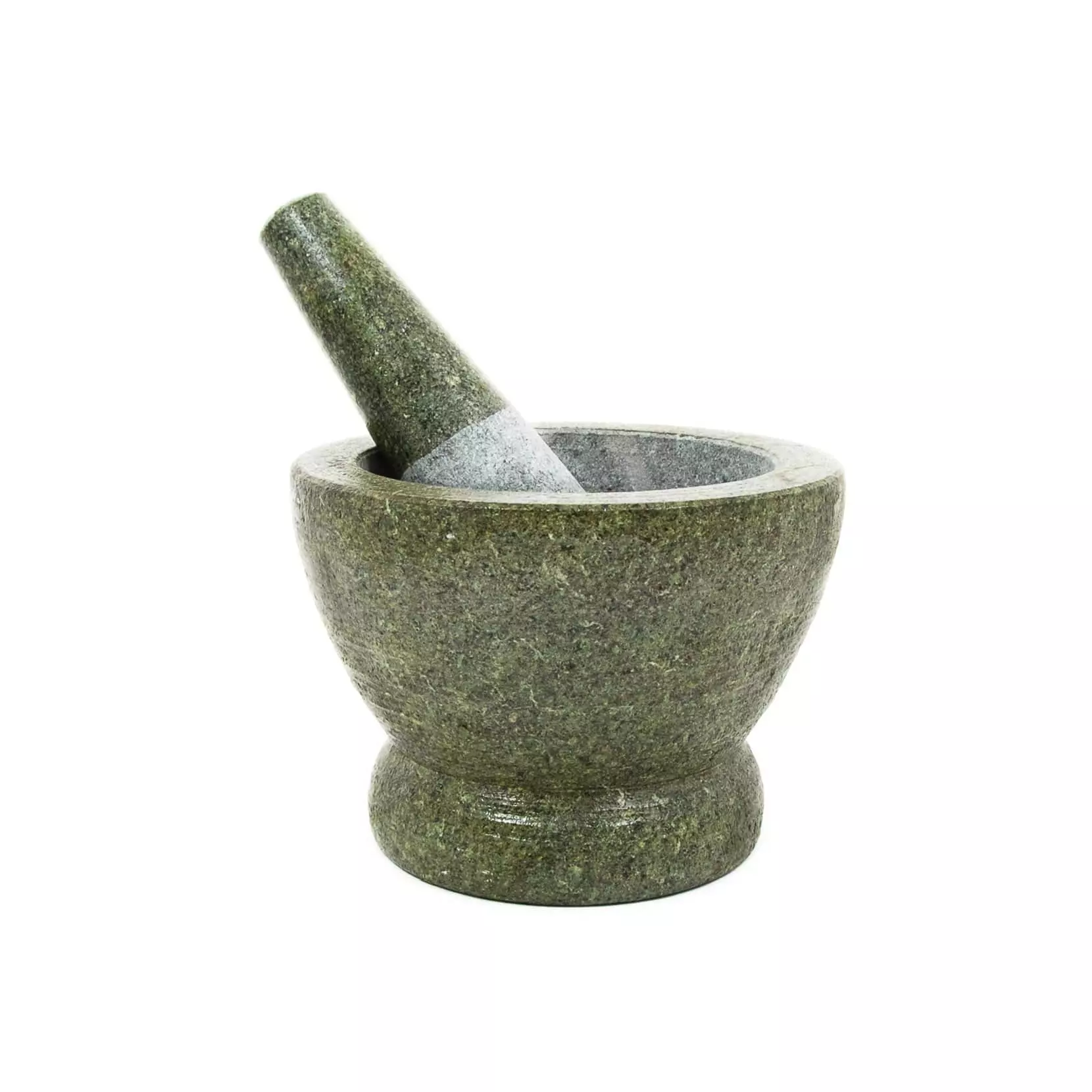 This large mortar and pestle is great for grinding herbs, spices and salts. Carved from a single piece of green granite, it is a stunning and practical utensil.