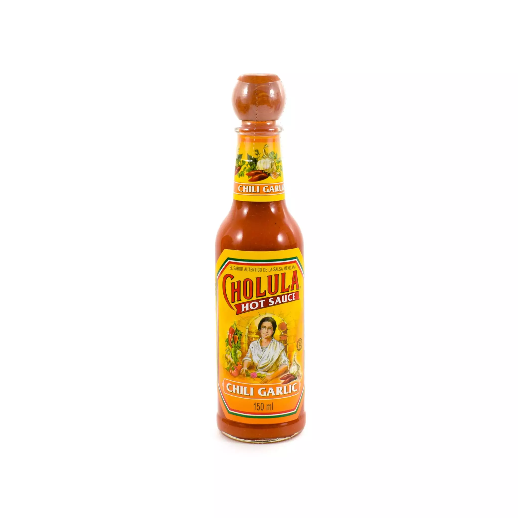 Cholula’s garlic hot sauce is recognisable with its wooden cap and custom shaped bottle, complete with vibrant yellow label. The Mexican hot sauce brings together two favorites (chilli sauce and garlic sauce). Dried arbol and piquin peppers are paired with garlic for a zingy marinade and condiment. Use this hot sauce to recreate some of your favourite dishes: