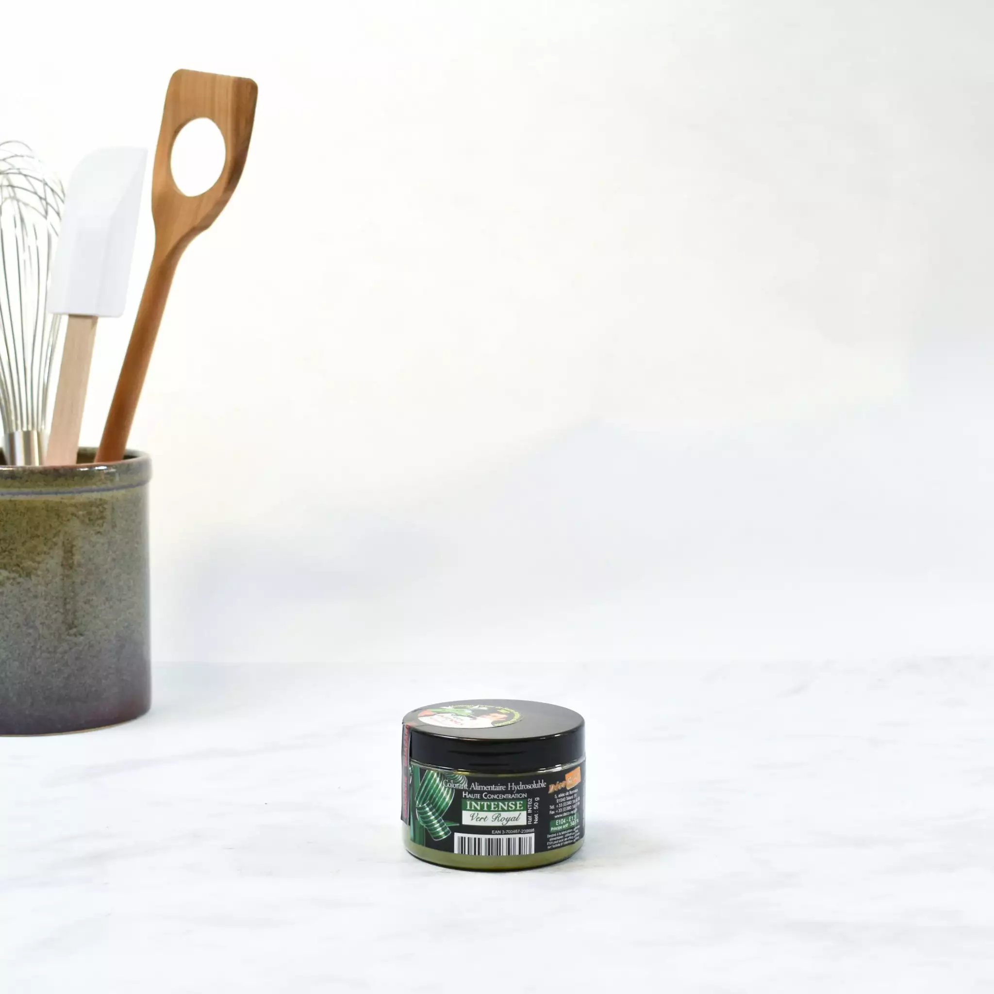 This intense royal green food colour is ideal for colouring macarons, patisserie, sugar-work, cakes, and icing. The intense green food colouring would work brilliantly in macarons, festive green cakes, or to paint royal green polka dots onto fondant icing.
