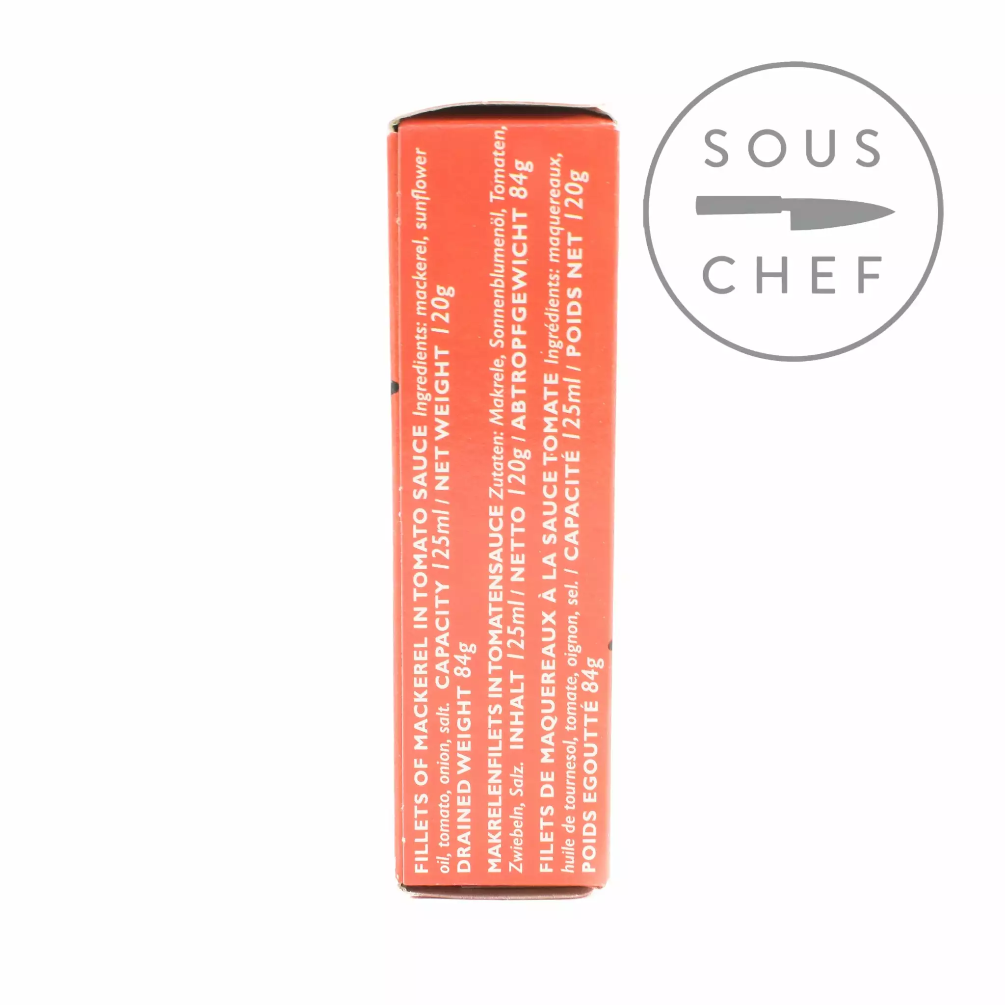 Fillets of Mediterranean mackerel in tomato sauce are a rich, sweet, salty treat – fantastic served on crusty sourdough toast, or made into a punchy pasta sauce. The mackerel fillets arrive fresh, and are cleaned and de-boned by hand, so very easy to prepare at home. The rich sauce is made with tomatoes from Andalucía in Southern Spain.