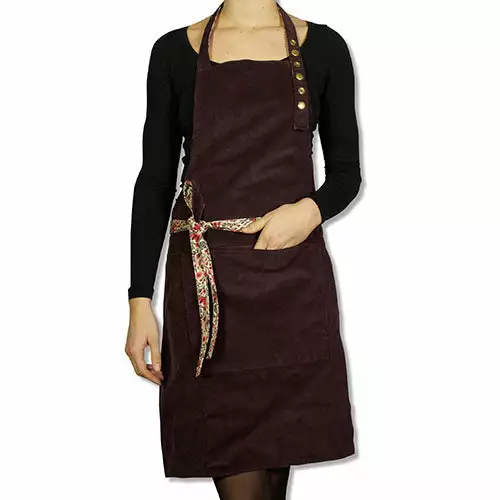 Both sides of the apron have a large front pocket. The reversible apron has an adjustable neck-strap with polished brass press-studs.