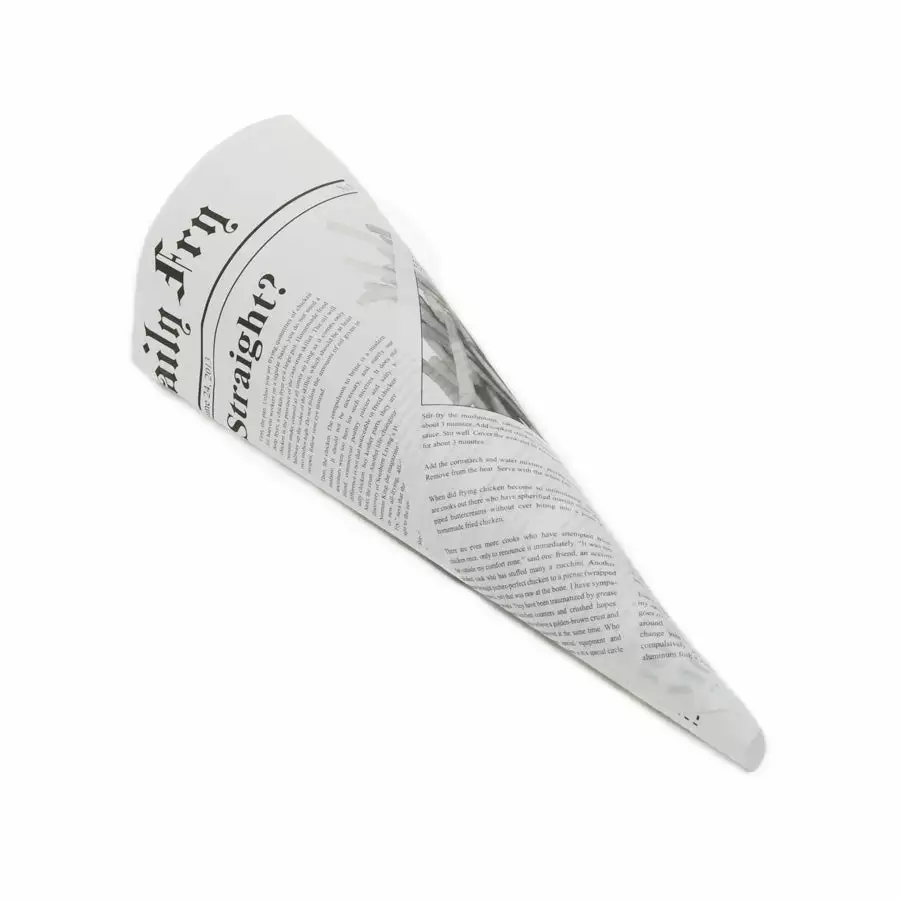 Serve fish and chips in classic British fashion with this food safe newsprint greaseproof paper. Each pack contains 48 sheets which are 30.5cm square, with a slight fold down the centre of each sheet where it sits in the packaging.