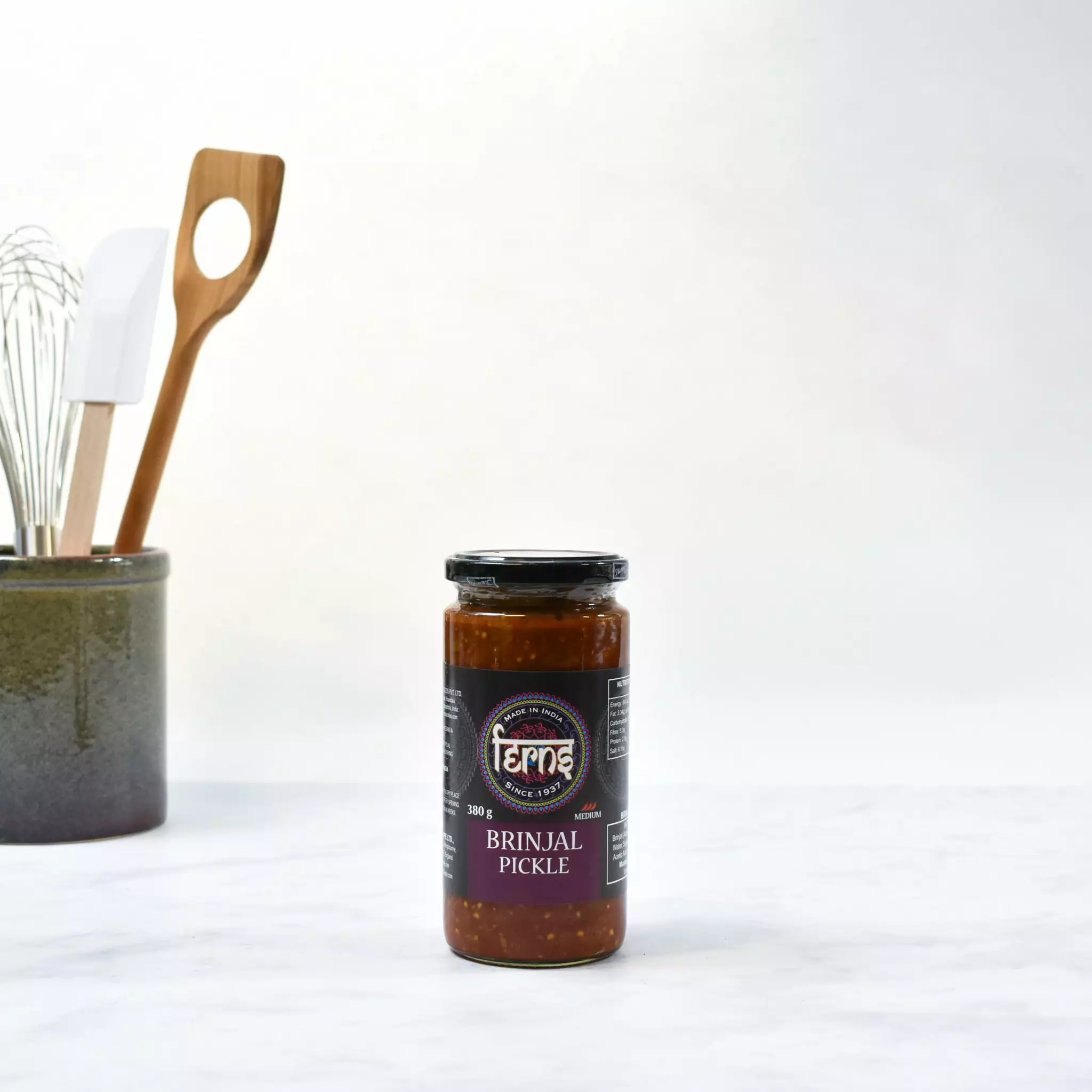 Ferns’ brinjal pickle is a tangy pickle made from the freshest of brinjals (aubergines). A spoonful of this brinjal pickle makes the perfect accompaniment to rice, curries, rotis and naans.