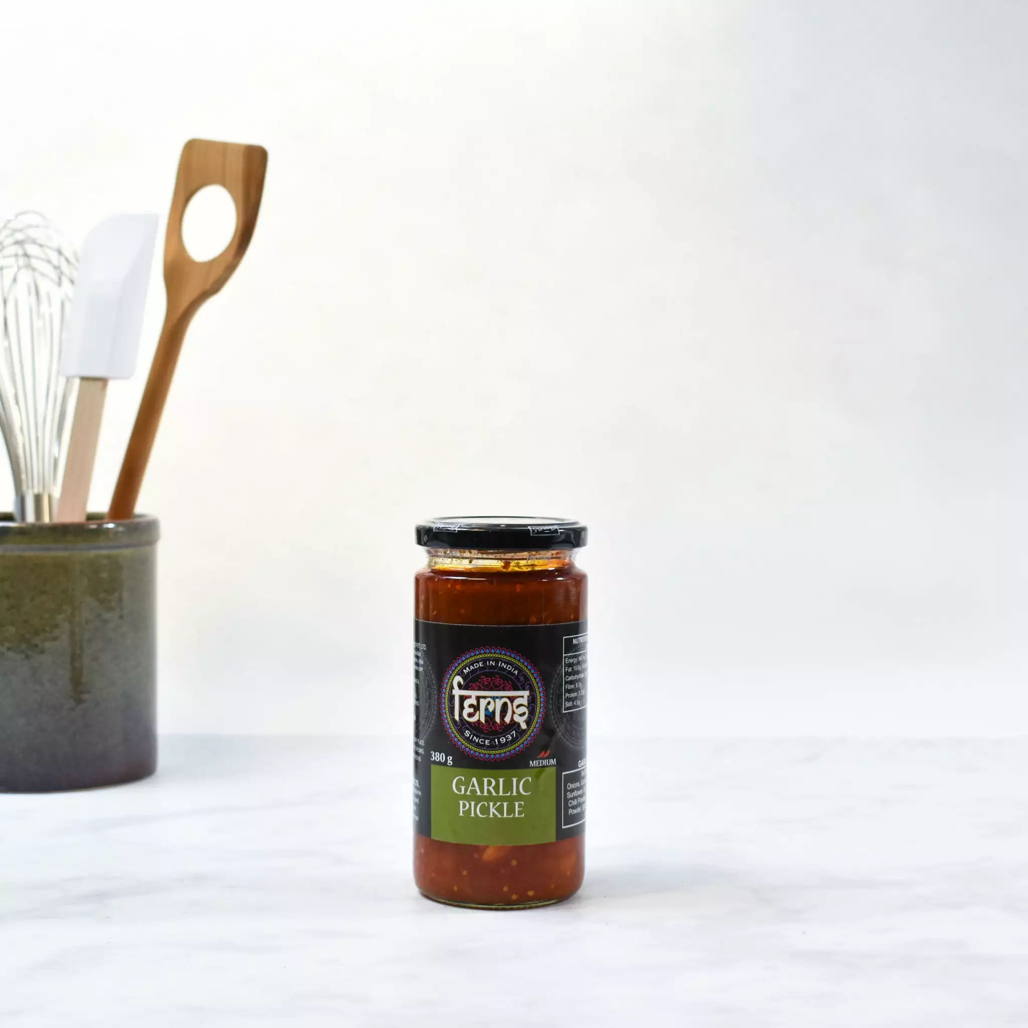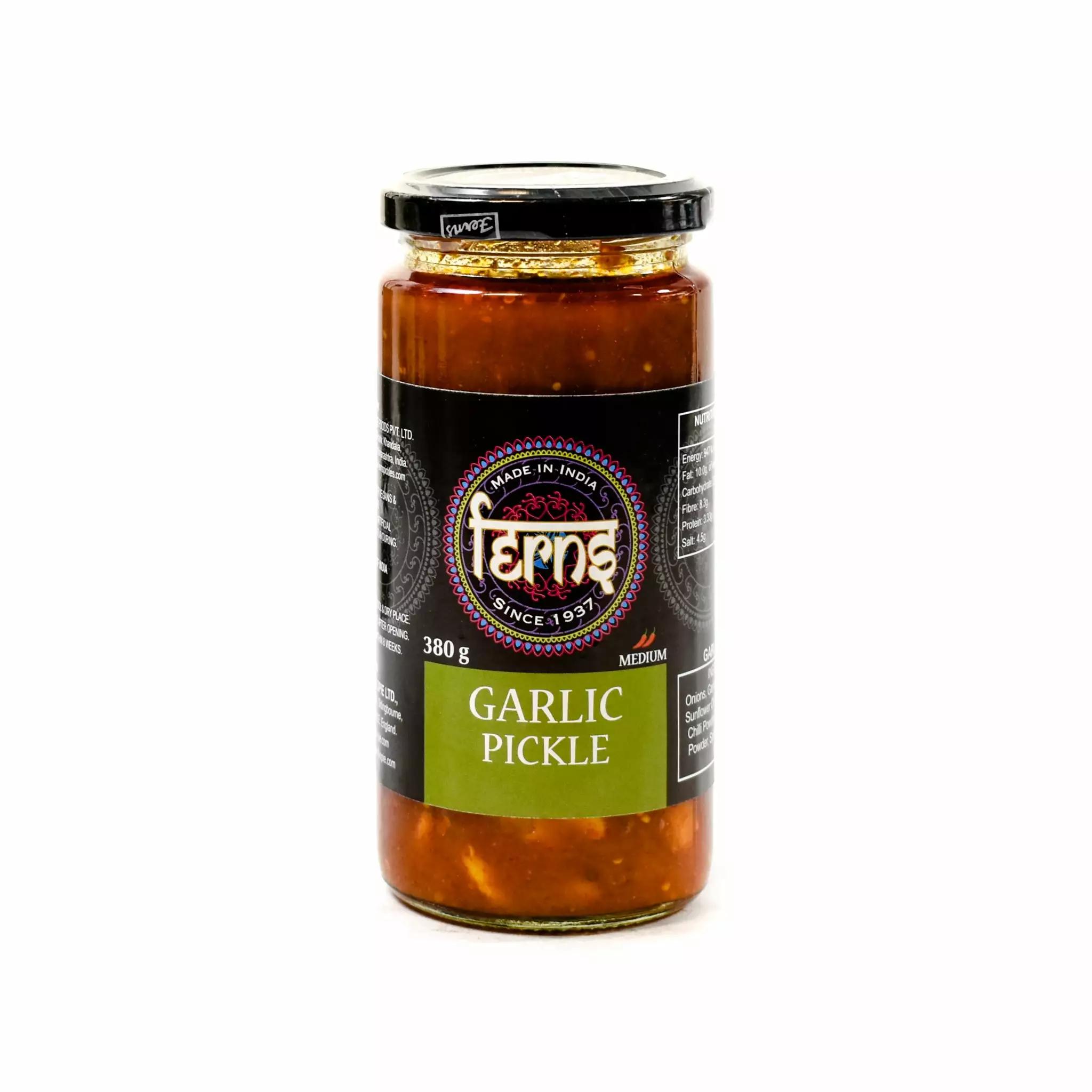 Ferns’ garlic pickle is a sweet tangy pickle made from whole cloves of fresh garlic. A spoonful of this garlic pickle makes a delectable accompaniment for curries and a tasty spread for spicing up sandwiches.