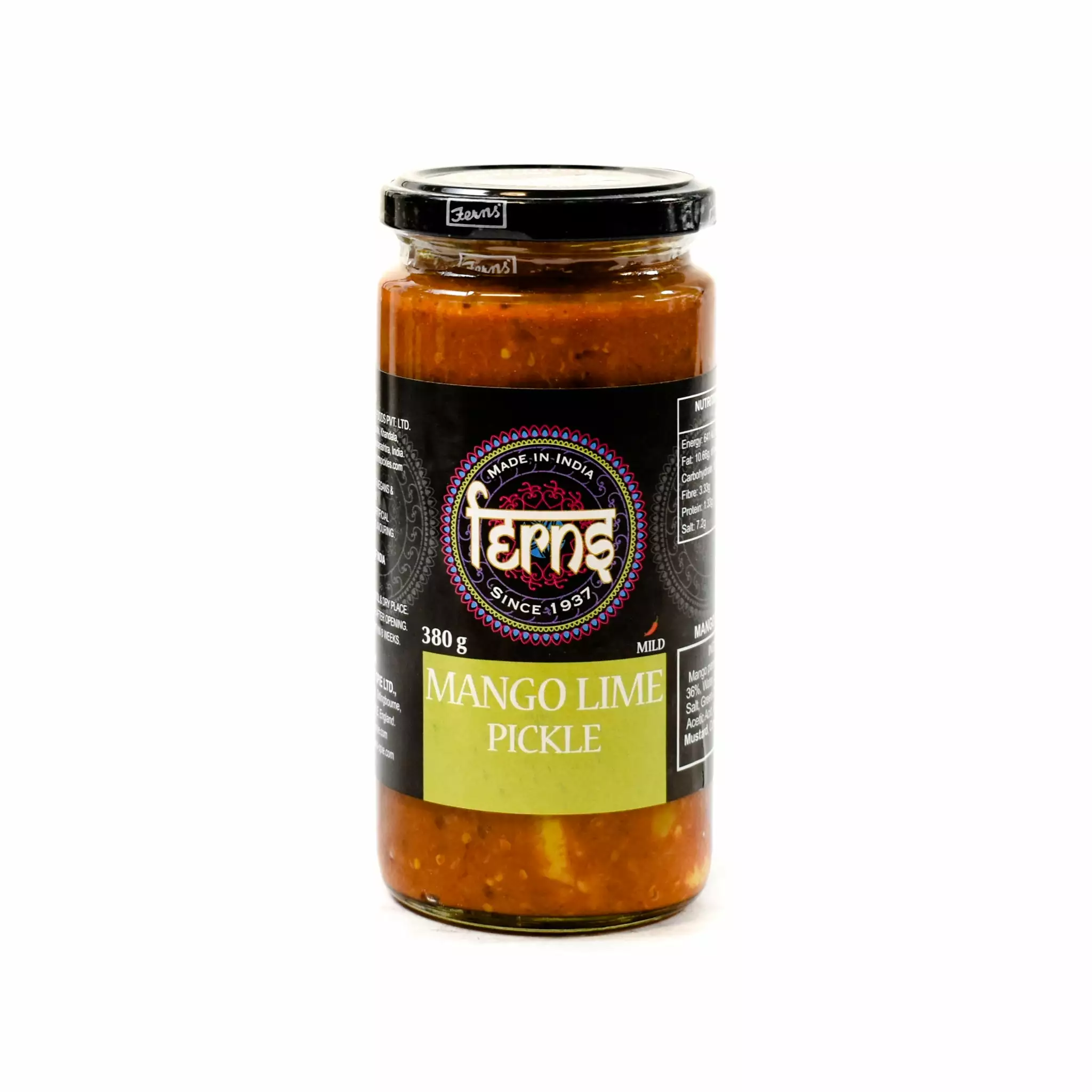 Ferns’ mango lime pickle is a blend of yellow limes and chunks of juicy mango. A spoonful of this tangy pickle makes a delectable condiment for curries and dipping breads.