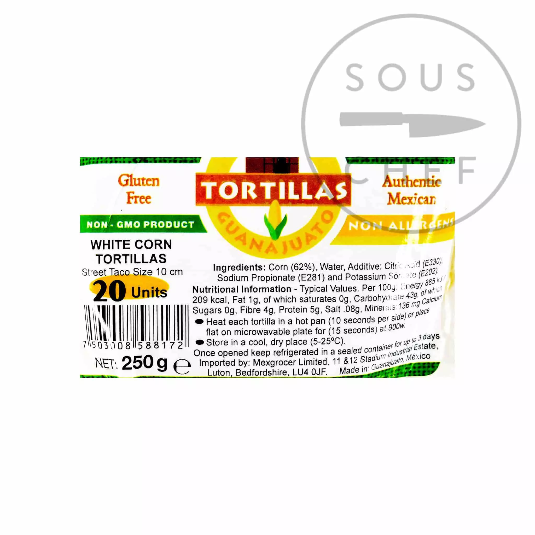 Guanajuato white corn tortillas are the perfect size for tacos. Or serve them with Mexican mole stew to mop up delicious sauce. Try putting them under the grill, with a brush of melted butter to crisp up, then slice into triangles for homemade tortilla chips – seasoned with a sprinkle of paprika.