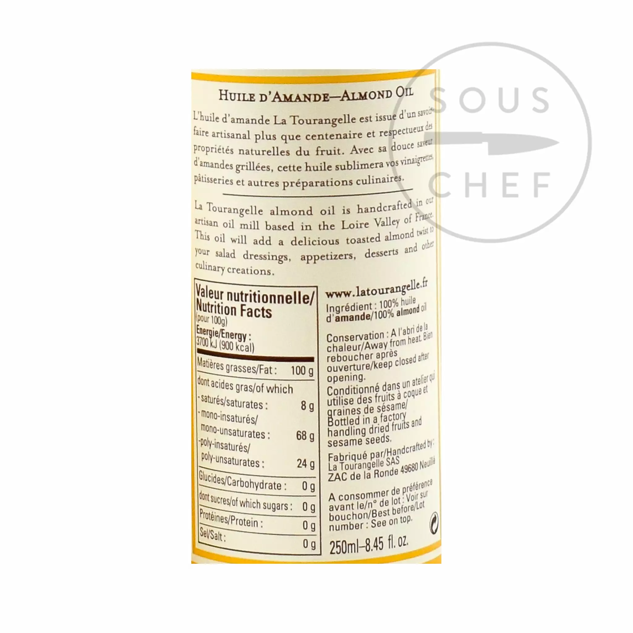 La Tourangelle almond oil is hand crafted in the Tourangelle artisan oil mill based in the Loire Valley in France. The pure almond oil is made from gently toasted almonds, to bring a light almond twist to salad dressings, appetisers, desserts and other dishes.