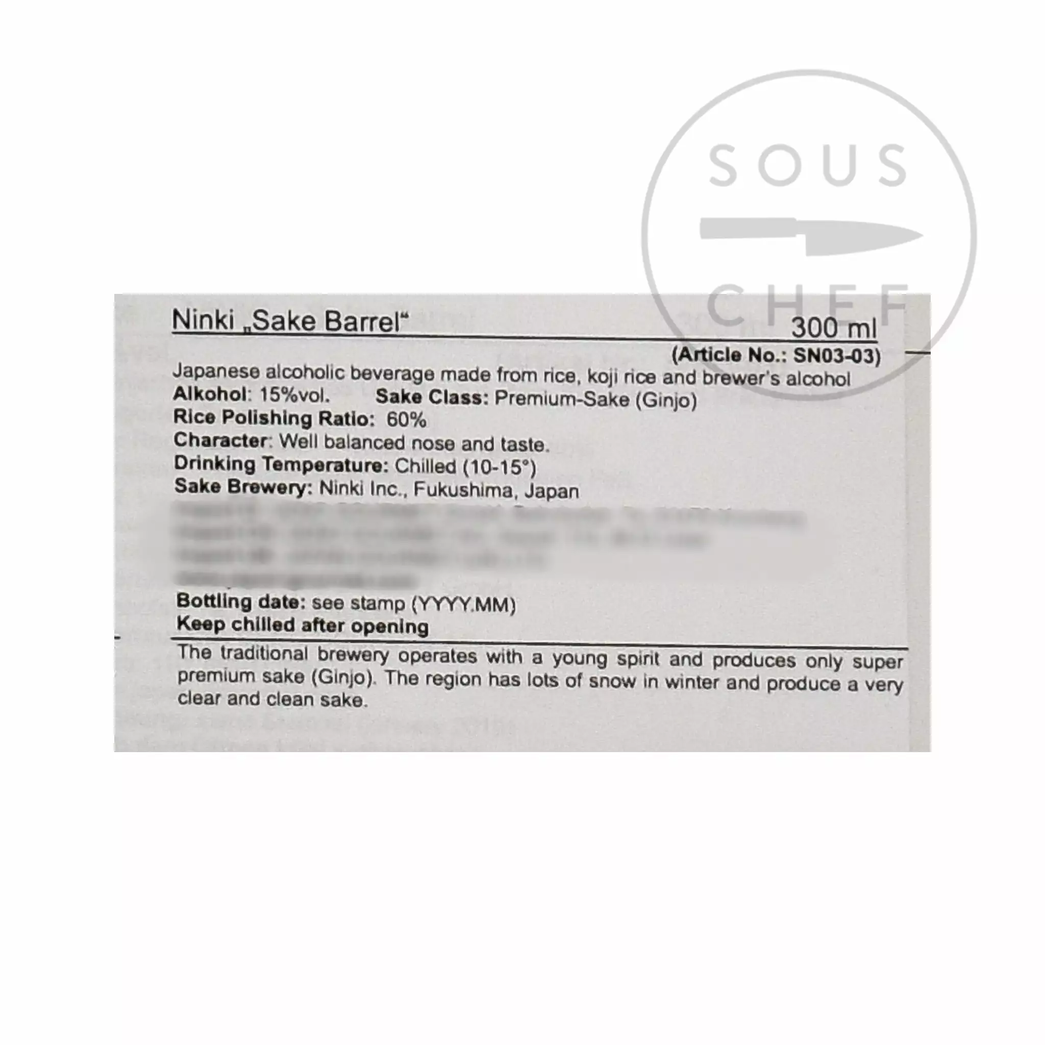Ingredients: rice, koji, brewer’s alcohol.