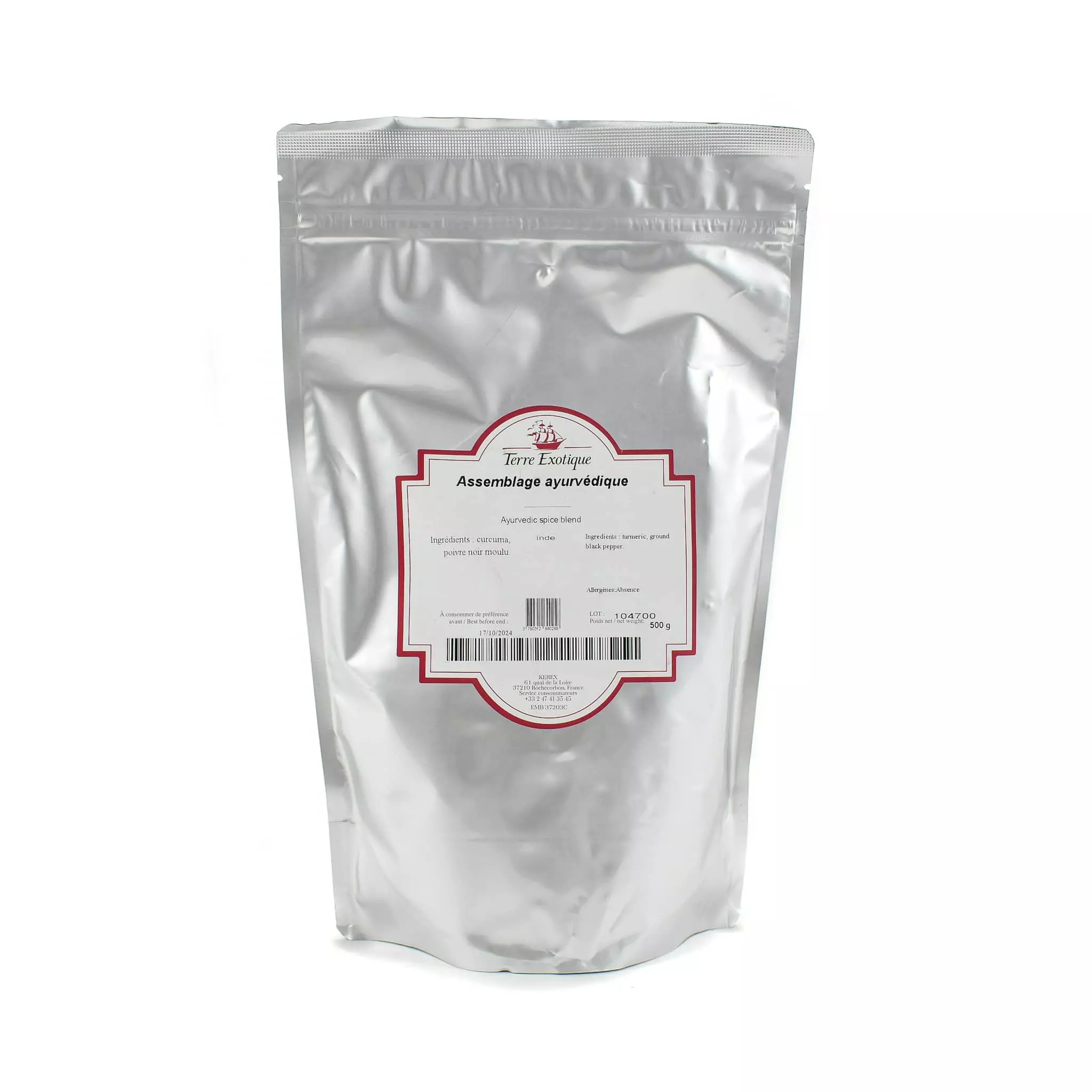 Terre Exotique’s organic Ayurvedic spice blend is a mix of musky turmeric which is offset with bitter notes of black pepper. It brings warm fragrance and vibrant colour to curries, sauces and stews. Ayurvedic spices originate from the Indian subcontinent, historically thought to have medicinal properties, but continue to be used across Asia for their gentle aromatic balance of flavours.