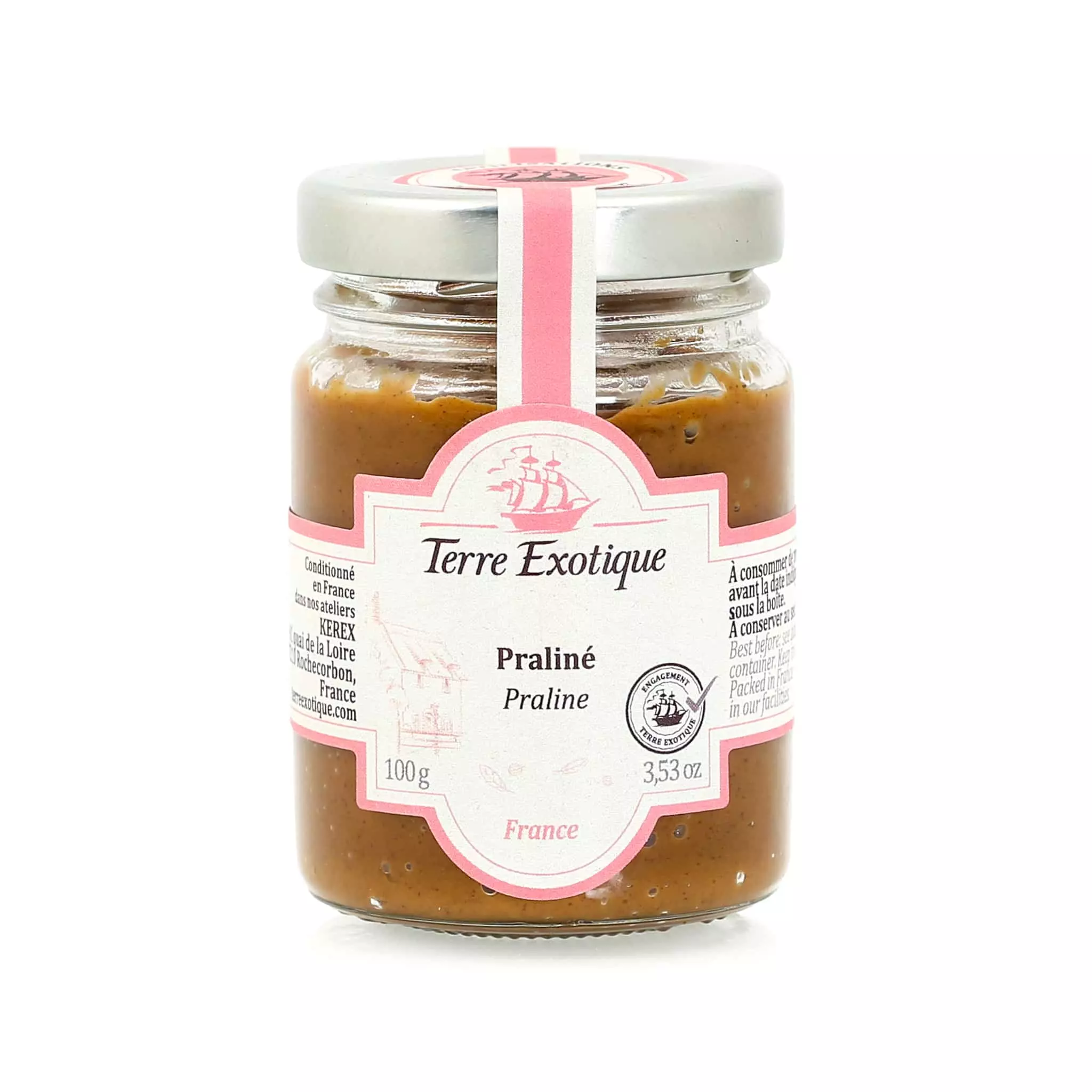Terre Exotique’s praline paste is a blend of almonds and hazelnuts with sugar. The strong nutty flavour is not too sweet and slightly crunchy – it’s a sophisticated addition to patisserie work. Use it to fill macarons, to flavour genoise sponge, or layer opera cakes. Or even spread on toast!