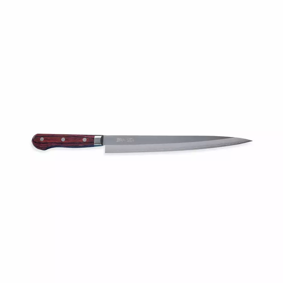 The Japanese AUS10 slicer was designed for use in kitchens where it will be in almost constant use. This knife will hold a razor-sharp edge and withstand the most demanding conditions.