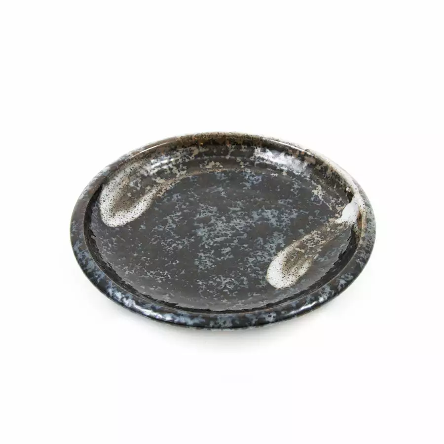Karasuba-Iro imeans ‘glossy black’ in Japanese, and this glazed ceramic plate has a beautiful glossy black and grey speckled surface. Additional red-brown detailing and white sweeps add to the elegance of the design
