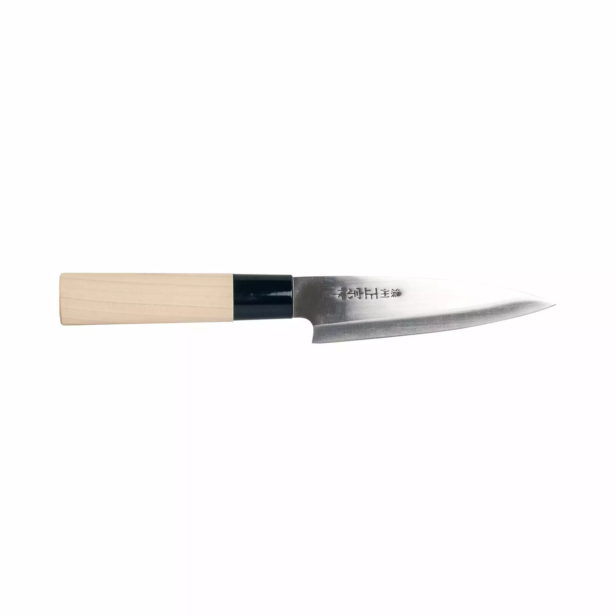 The Japanese petty knife is indispensable for more delicate kitchen tasks – such as removing the eyes from potatoes, peeling fruits and vegetables, or even intricate carving for artistic garnishes. The knife is small enough to use in the hand, but still big enough to use comfortably on a chopping board.