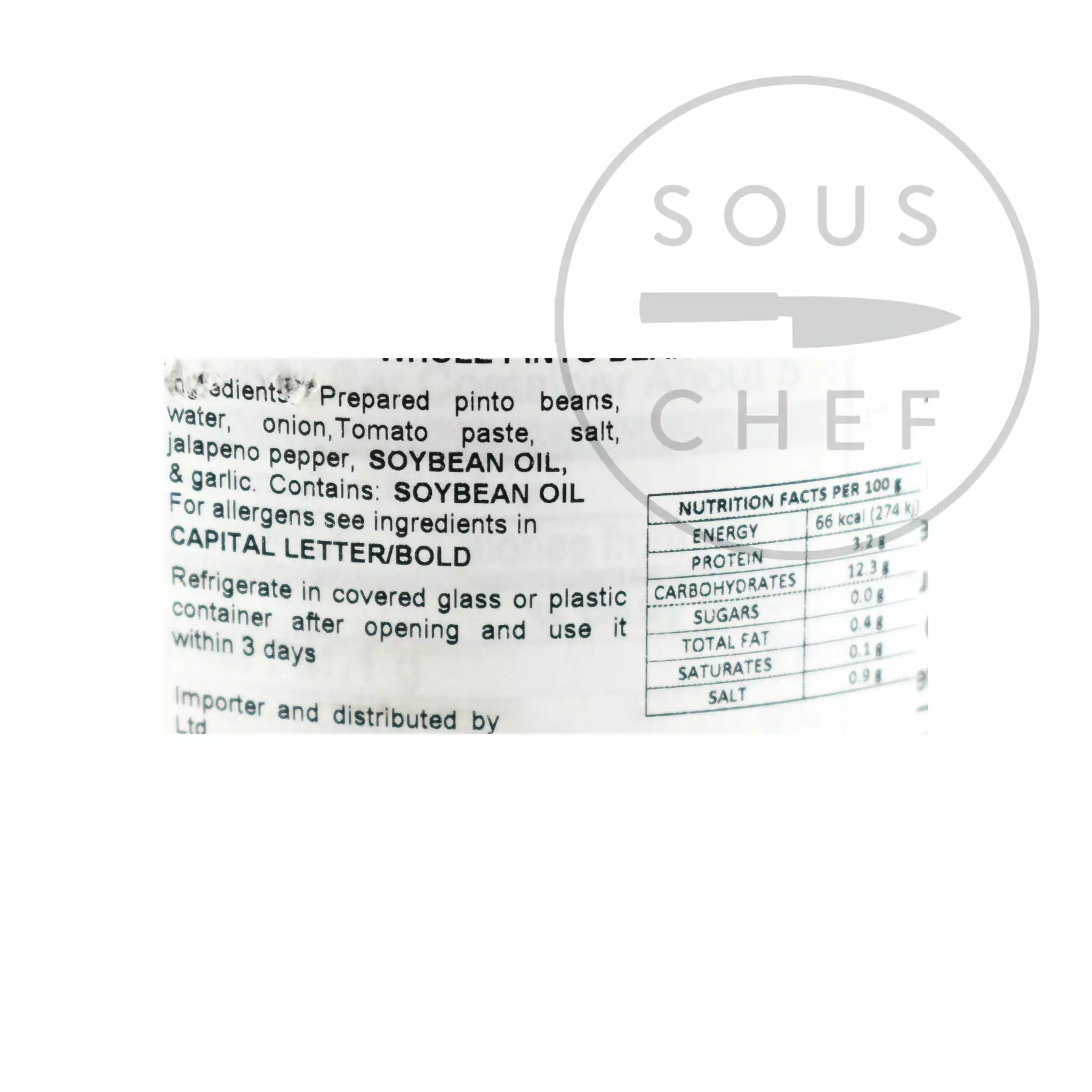 Ingredients: Prepared pinto beans, water, onion, tomato paste, salt, jalapeno pepper, soybean oil, garlic.