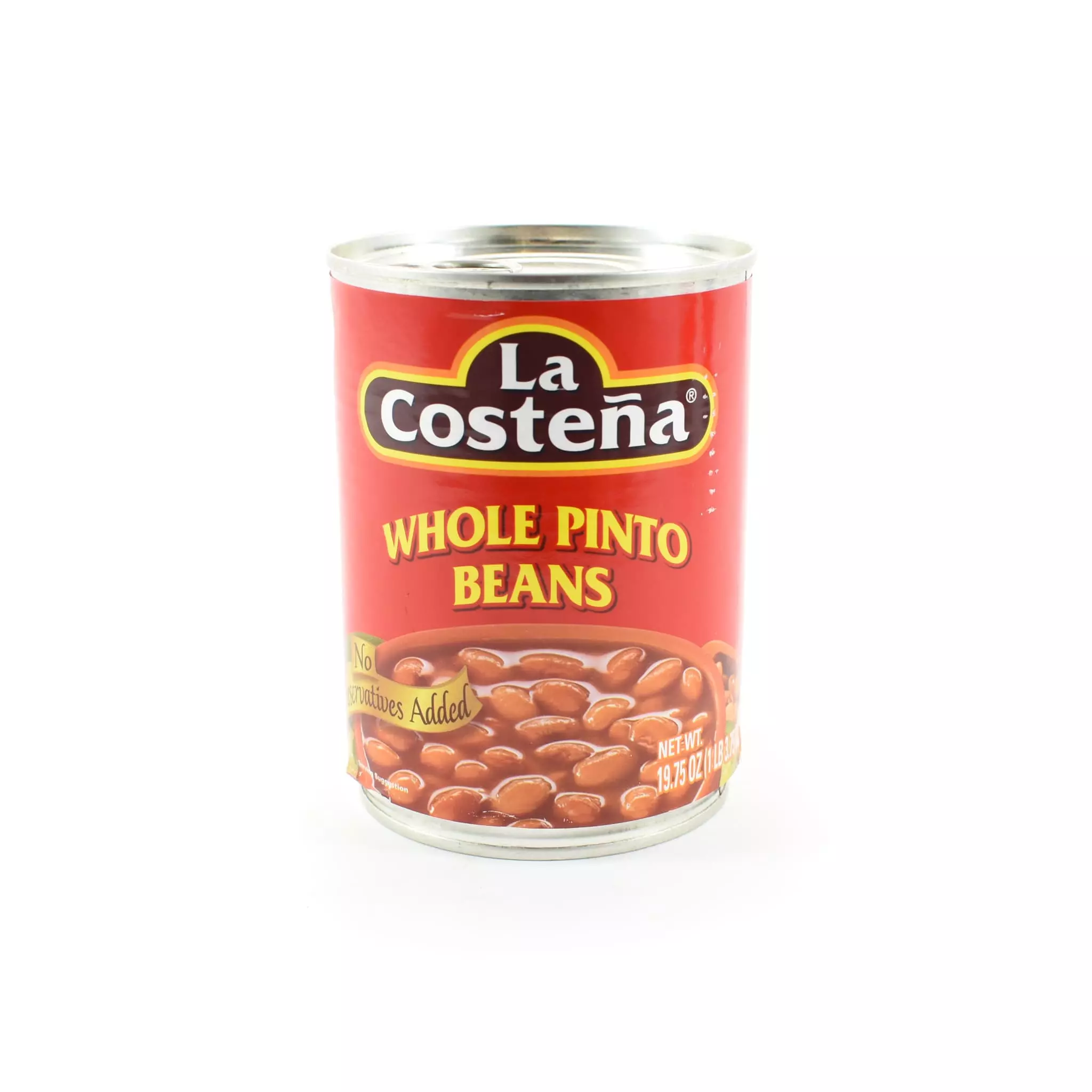 La Costena whole pinto beans let you prepare a Mexican feast in minutes. The beans are blended with water, onion, tomato paste and jalapeno pepper, which means they’re already seasoned, and ready to pop into a burrito with rice, lettuce and salsa.