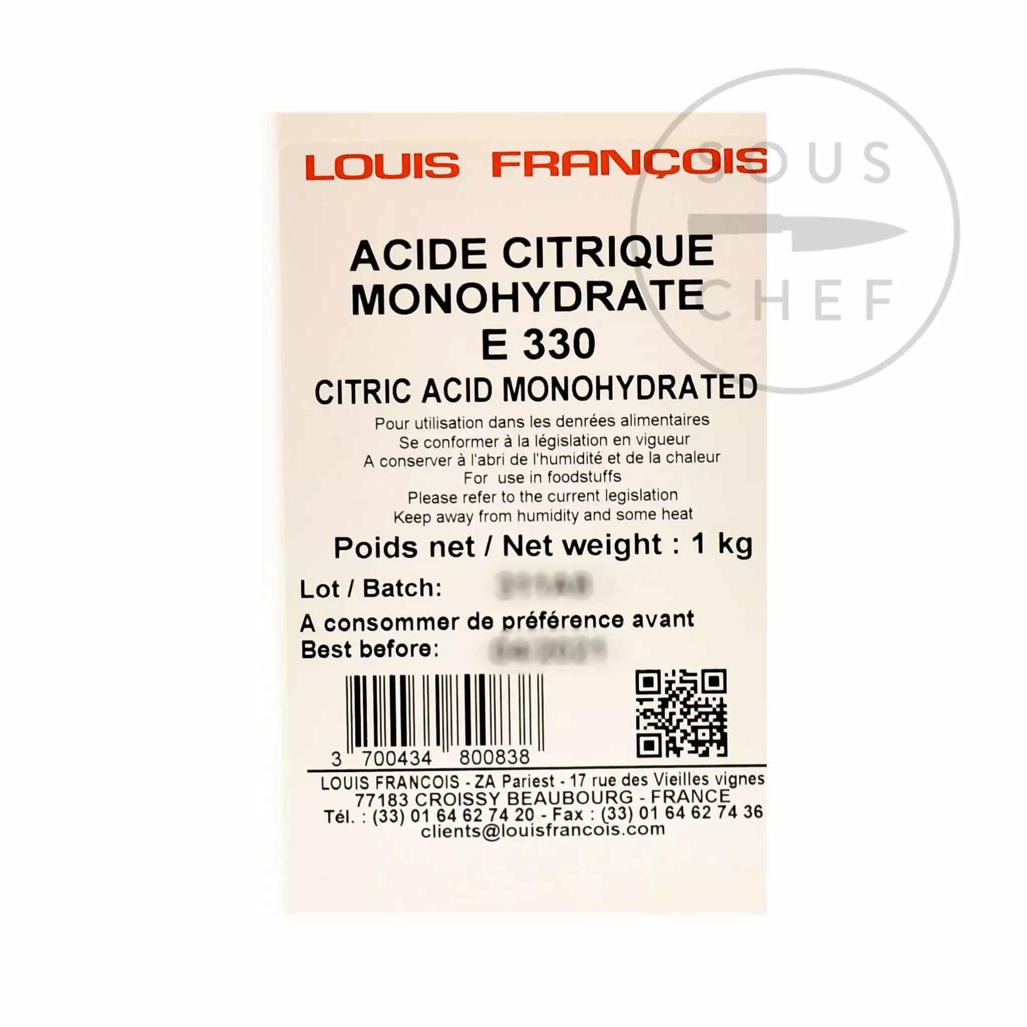 Louis Francois citric acid is a natural preservative found in citrus fruits. Use in homemade cordials and jams, or prevent discolouration in fruit salads or avocados. The white powder has the familiarly tart flavour of citrus fruits, so is often used to make sour candies. It is also used in modernist cuisine to adjust the pH balance, or as an emulsifier.