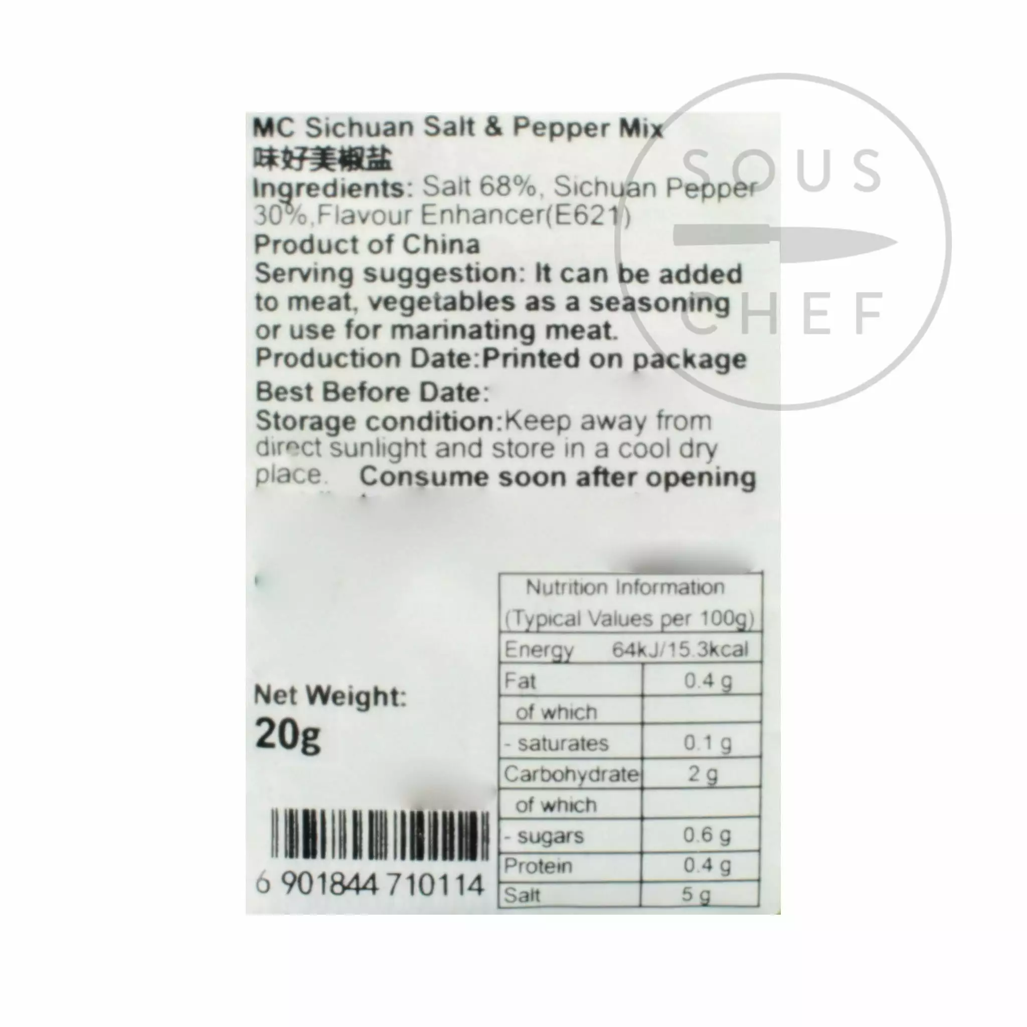 Ingredients: Salt 68%, Sichuan pepper 30%, flavour enhancer (E621)