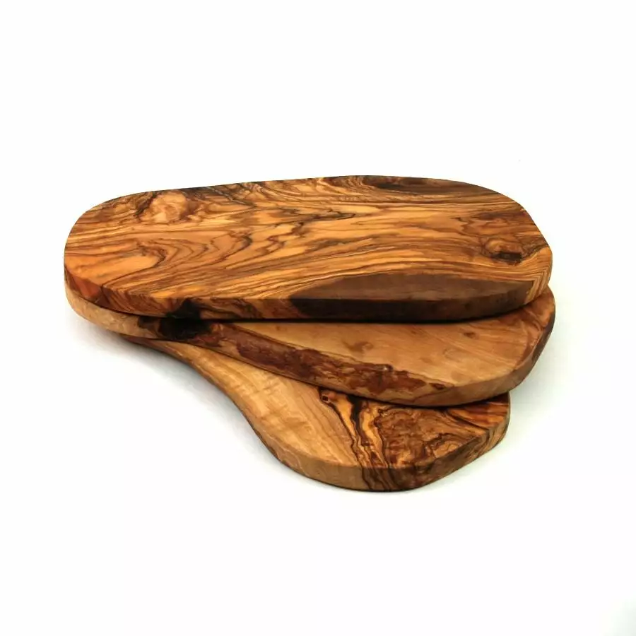The olive wood board is hand carved from a single piece of tree – so shapes and patterns vary. Hand wash only, and occasionally coat with olive oil to stop the wood from drying out.