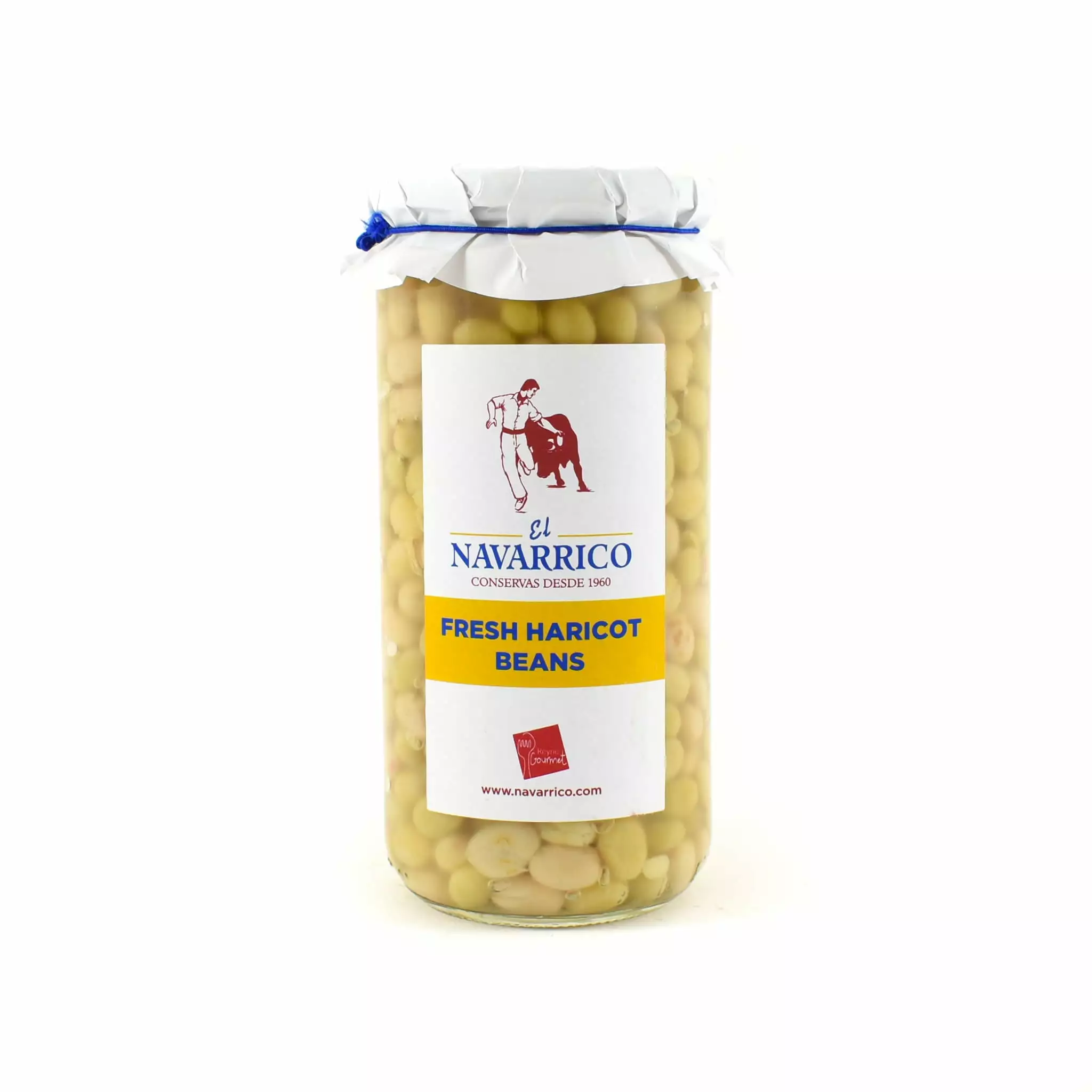 These Navarrico fresh pochas beans are picked from the haricot plant and cooked fresh before preserving in a jar – fantastic served with white fish. With a slightly green hue and fine texture, these small beans are popular in Spanish cooking across the Navarra and RIoja regions.