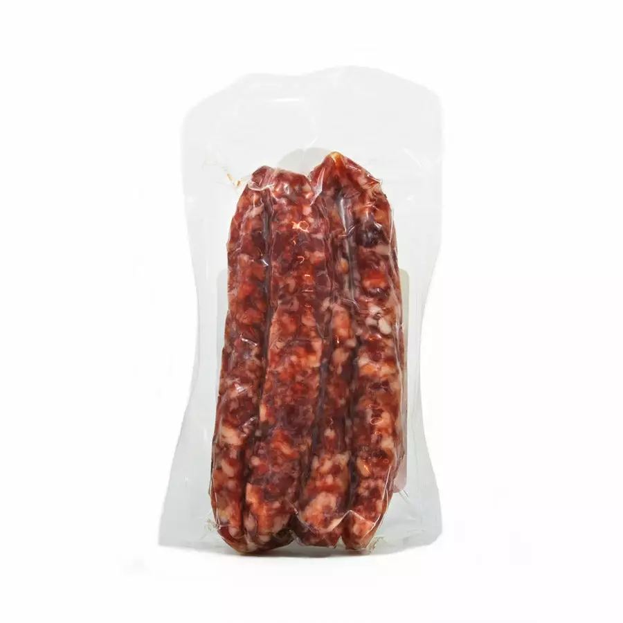Chinese wind-dried pork sausage – lap cheong or lạp xưởng – is a semi-dried pork sausage, seasoned with a sweet-salty and light rosewater liquor. The Chinese wind-dried sausage is highly seasoned so is used to balance flavours of other ingredients. A little goes a very long way – perhaps adding just one or two sausages to a dish for four people. Each packet contains 4 sausages.