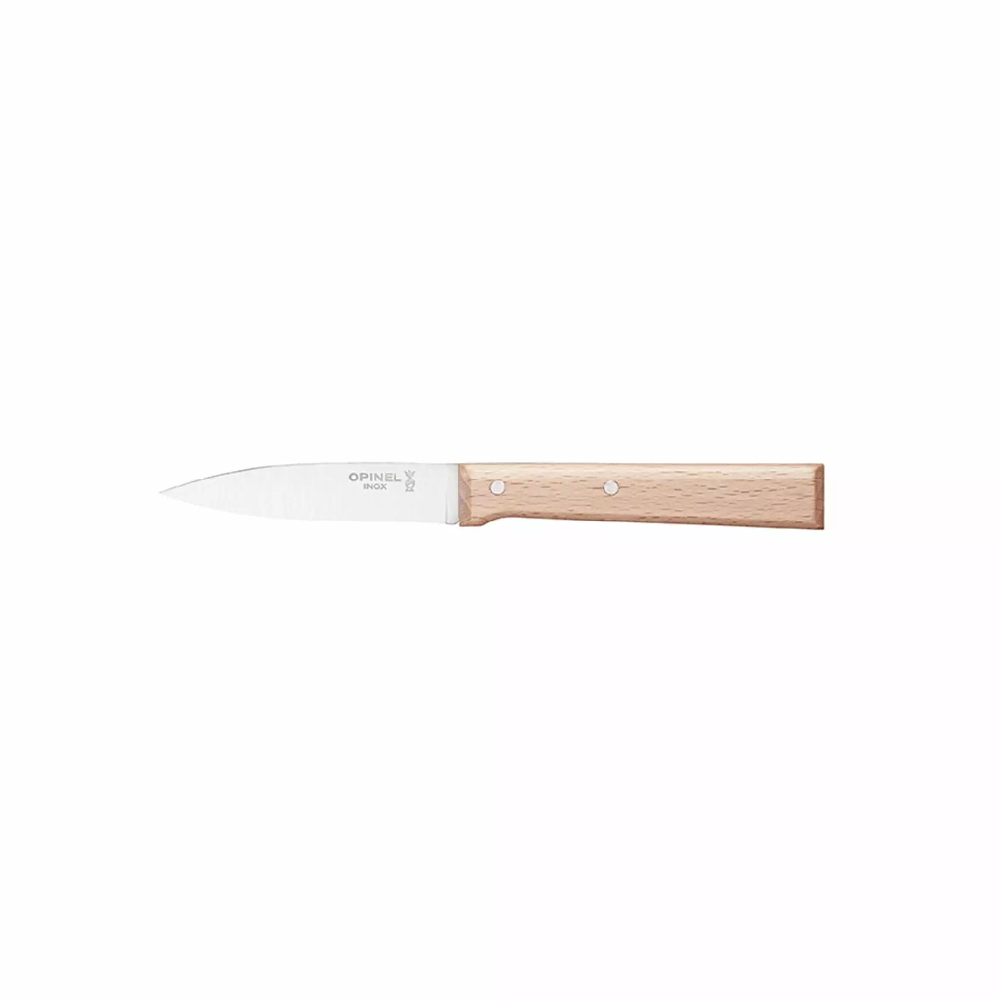 The Opinel Parellele beech handle paring knife, or office knife, is one of the most important knives in your kitchen. Use to peel fruits and vegetables in the hand, to slice garlic and to cut the eyes from potatoes.