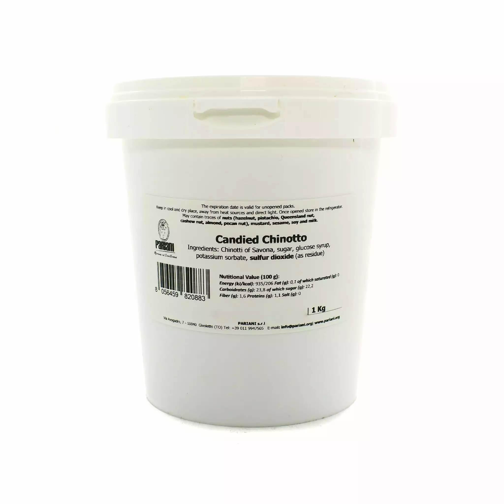 Pariani’s candied chinotto adds an aromatic, herbal bitter orange flavour to panettone doughs, ice cream and cakes. Ligurian chinotto fruits – also known as whole sour oranges – are placed in tins, then covered with a hot sugar syrup.
