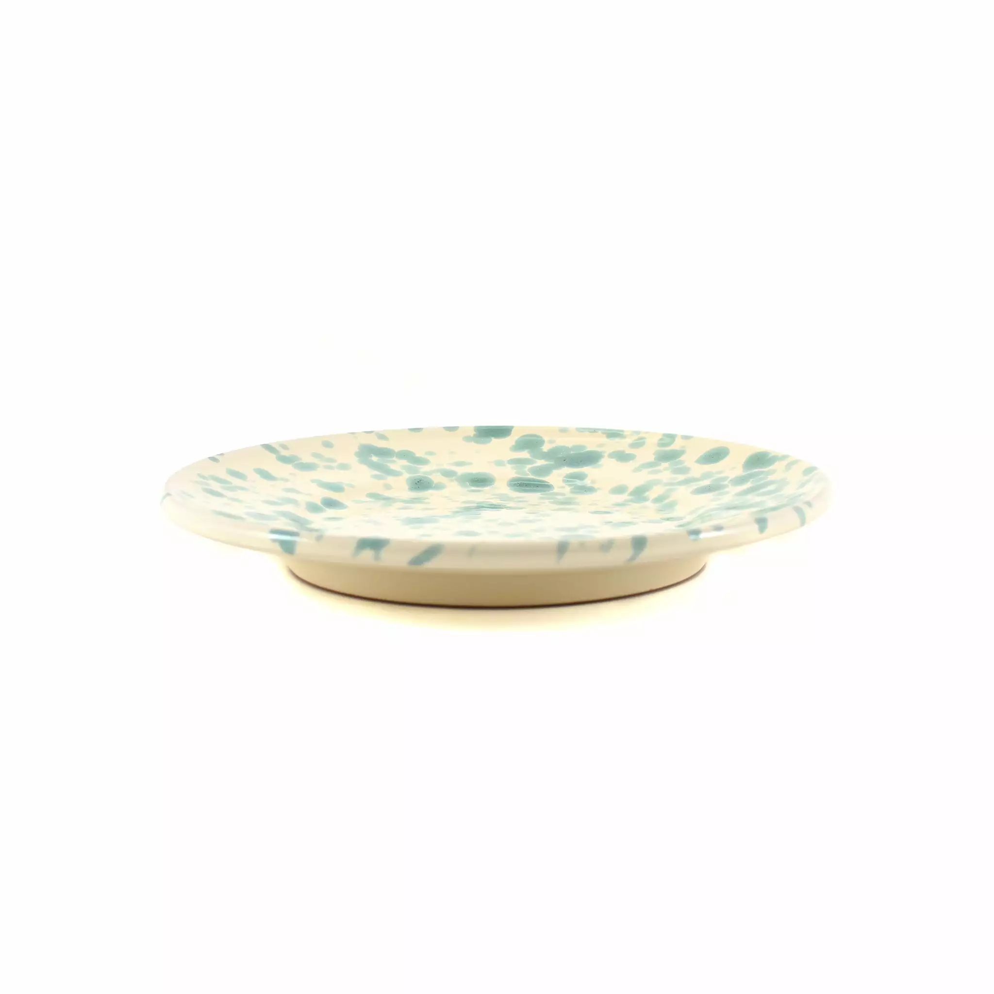 Use the Puglia aquamarine splatter side plate for serving Italian biscotti biscuits and ricotta-filled cannoli. The cream background contrasts with the bright aquamarine splatters – a nod to the Italian coast.