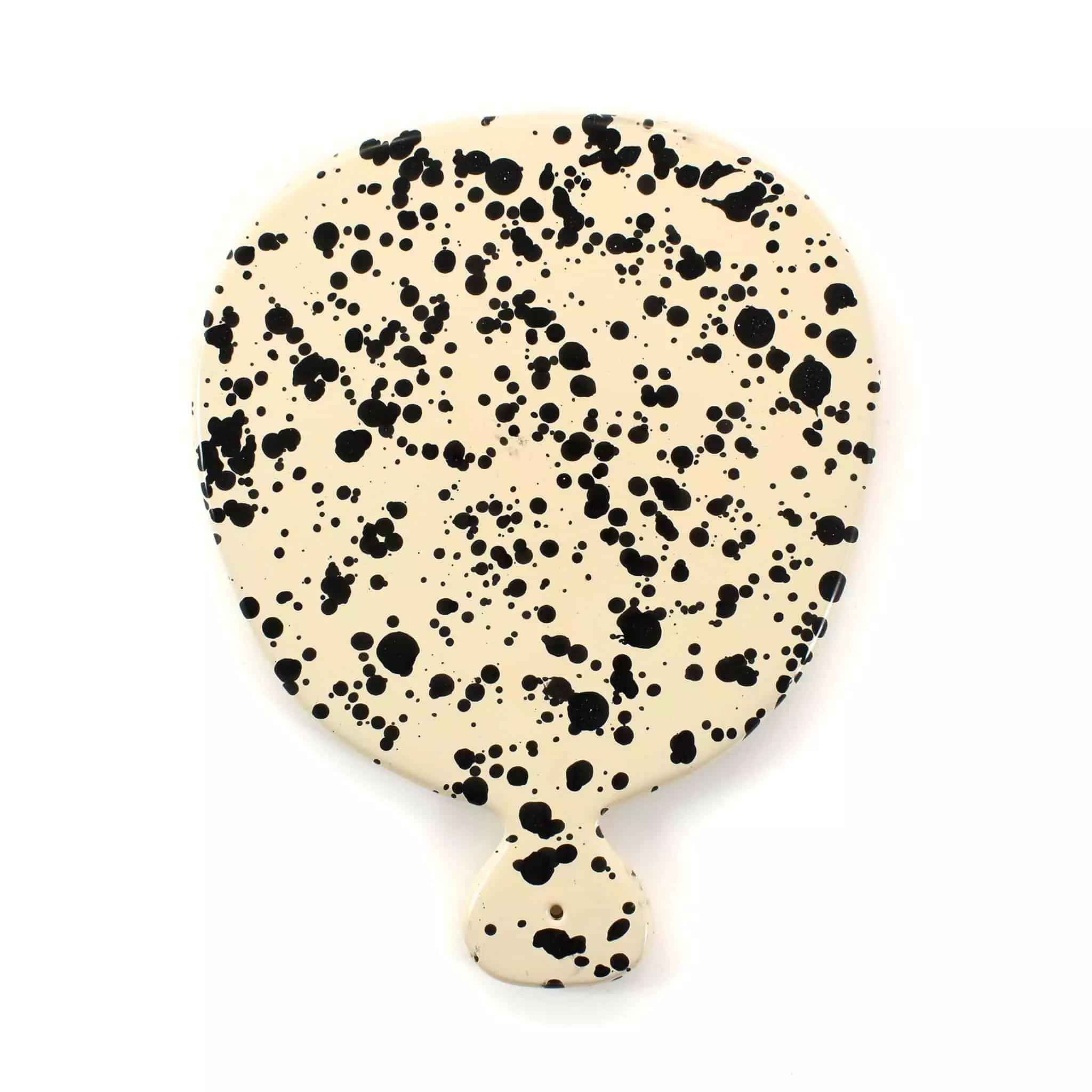 The monochrome ceramic board has a striking black splatter decoration. Mix and match with other Puglia tableware for a bright crockery collection.