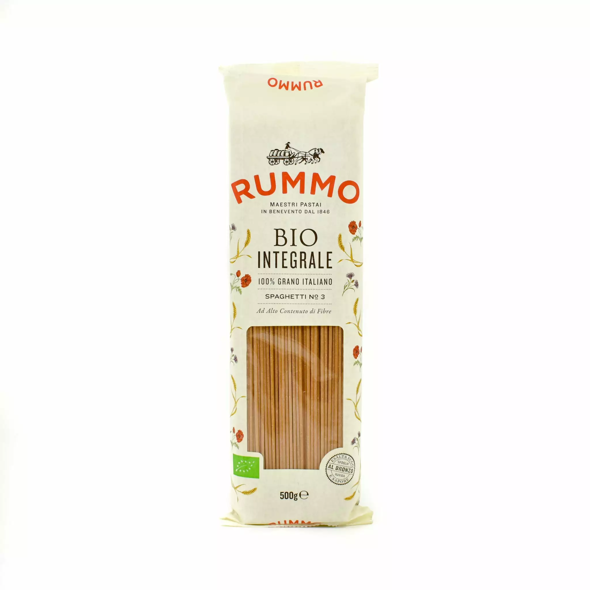 Rummo wholemeal organic spaghetti no. 3 is the new wholemeal version of this favourite pasta shape. The pasta is made with organic wholemeal durum semolina and extruded through bronze dies. The rough surface allows sauce to cling to the pasta. Rummo wholemeal organic spaghetti cooks in 9 minutes.