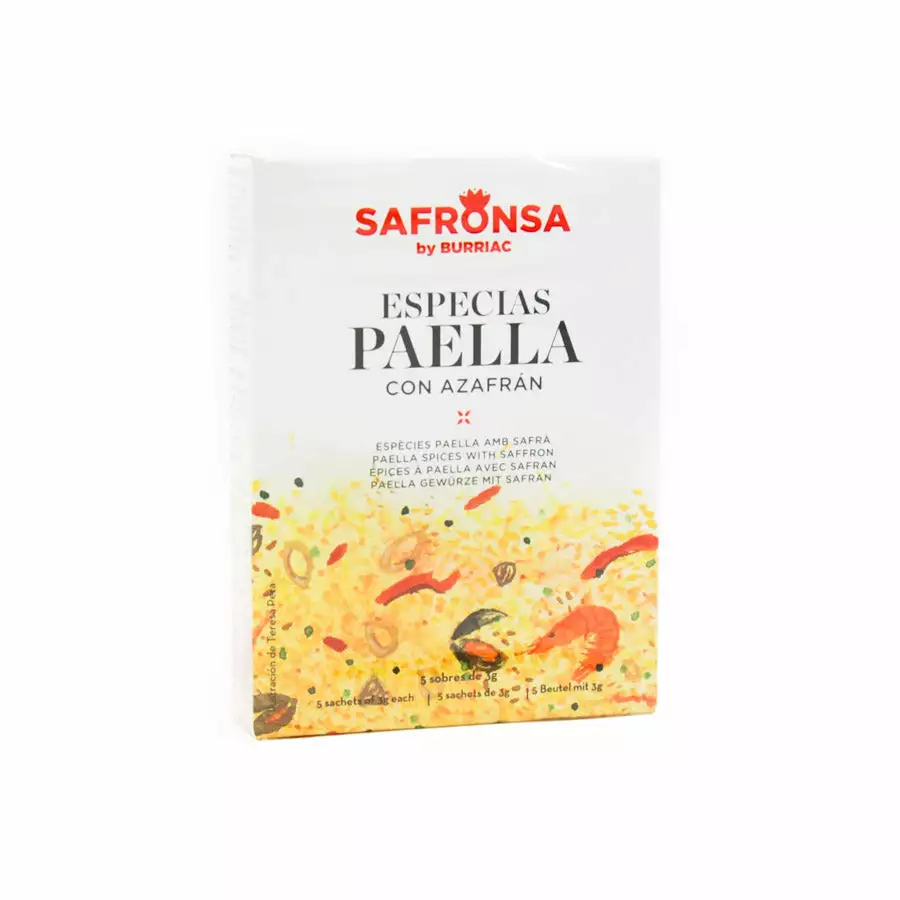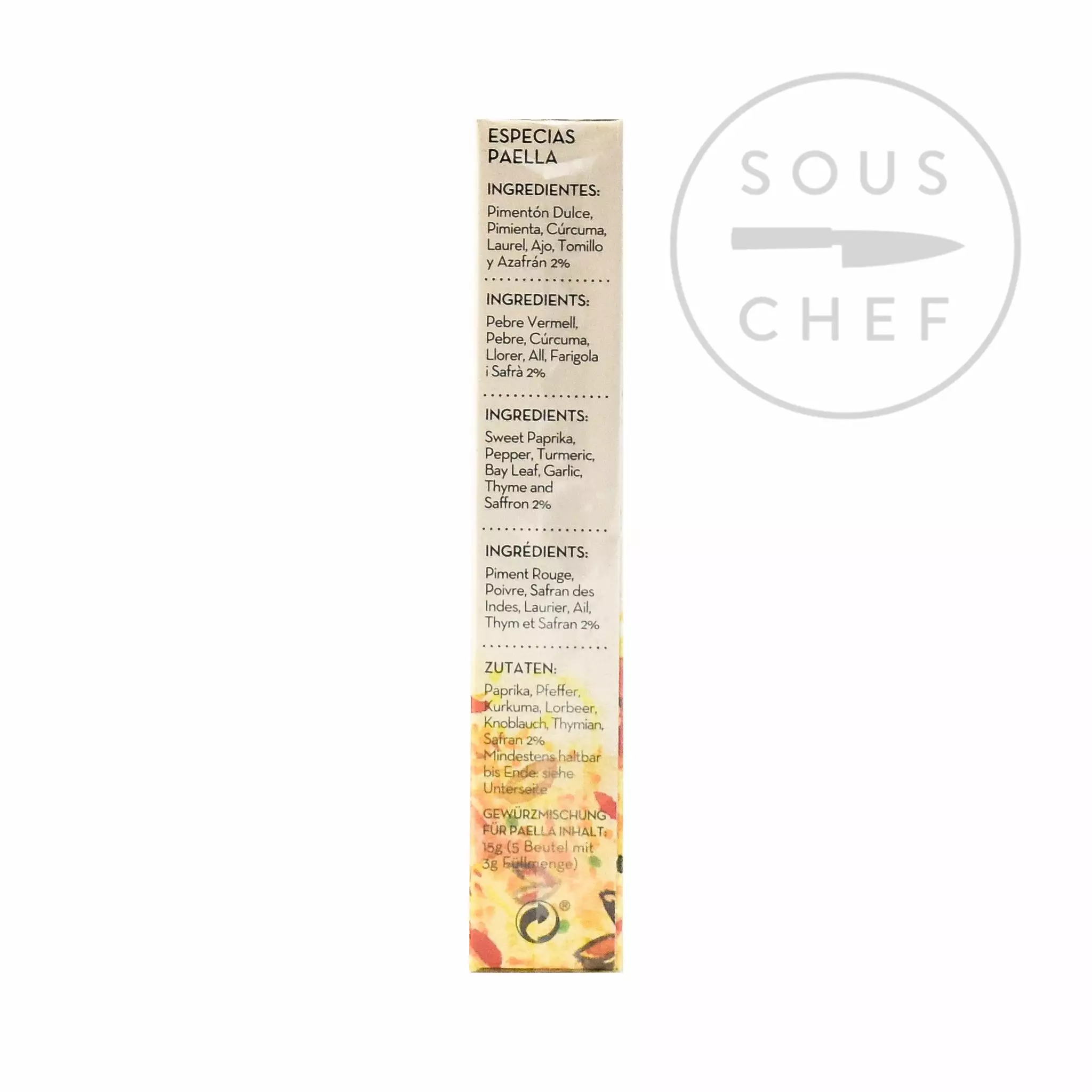 Use paella seasoning sachets to make an authentic looking and tasting paella quickly and easily. Simply sprinkle the contents of one sachet into cooked, short-grain rice and stir through. The paella seasoning includes five sachets of saffron and turmeric to give your paella the classic golden colour, and sweet paprika, pepper, bay leaf, garlic and thyme for great flavour. Just add the toppings of your choice – seafood, chicken, vegetables – and your paella is ready to serve.