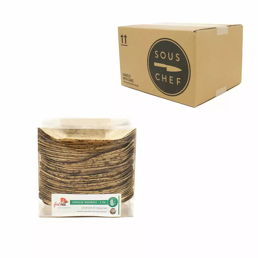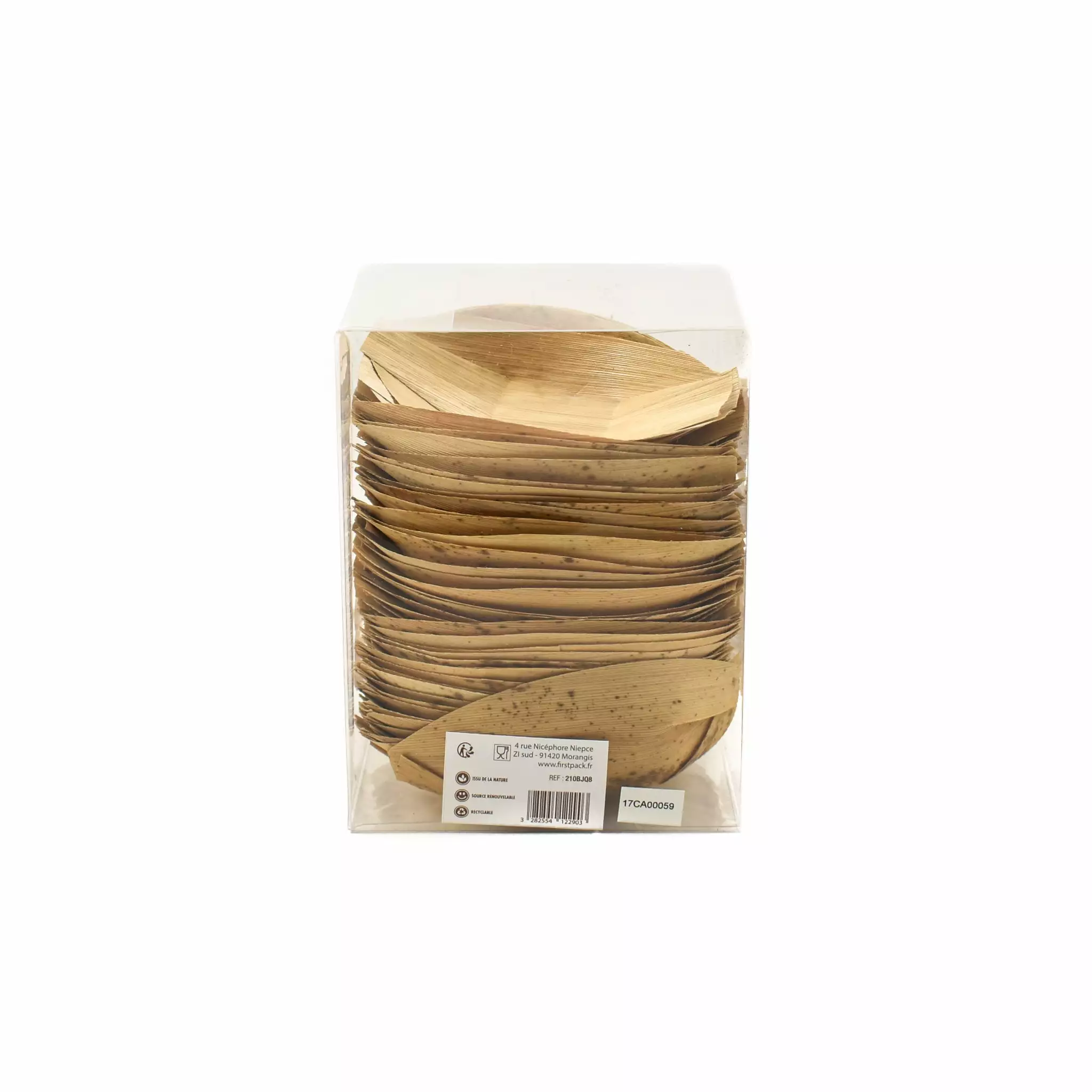 This pack of canapé boats is made from bamboo leaves, which have a delicately furrowed texture, and are a great natural material to serve food from. The small bamboo-leaf canapé boats are an elegant way to present canapés or starters such as tuna tartare, a couple of maki sushi rolls stacked side by side, or a miniature summer roll.