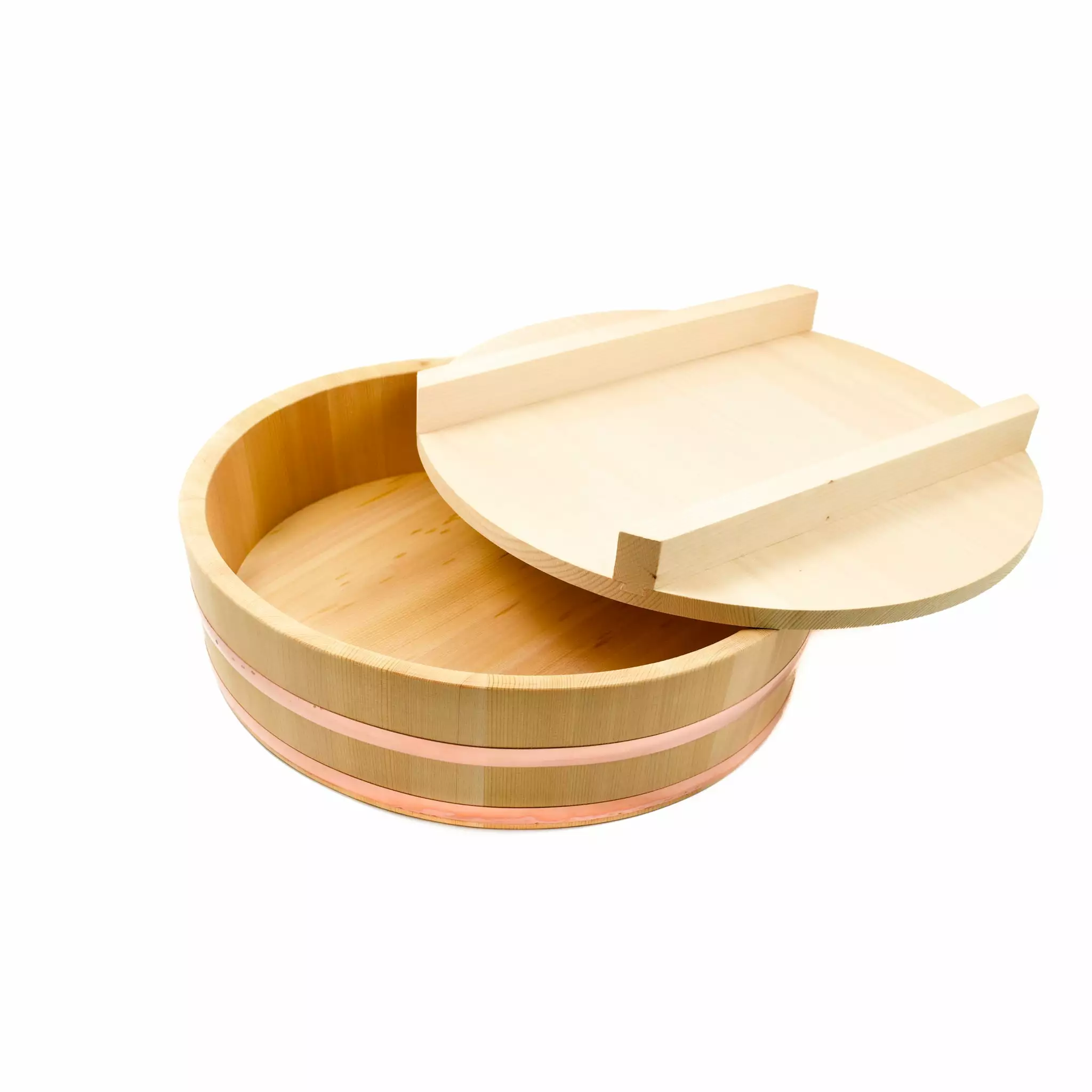 Select a hangiri lid from the dropdown menu above to fit your sushi barrel. It will keep cooled sushi rice covered until ready to use.