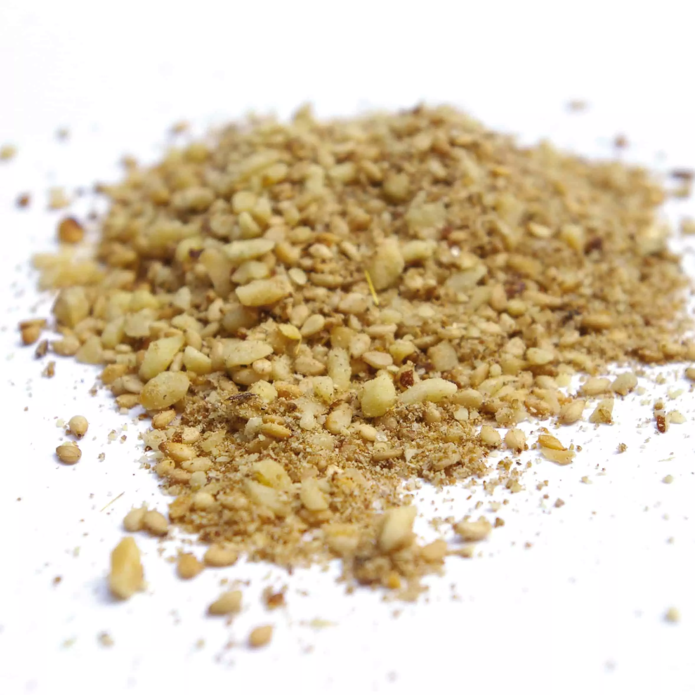 Made with crushed almonds, hazelnuts and sesame, this toasty blend is excellent paired with fried halloumi, used as a dry marinade for chicken skewers, or sprinkled over roast vegetable salads for extra texture.