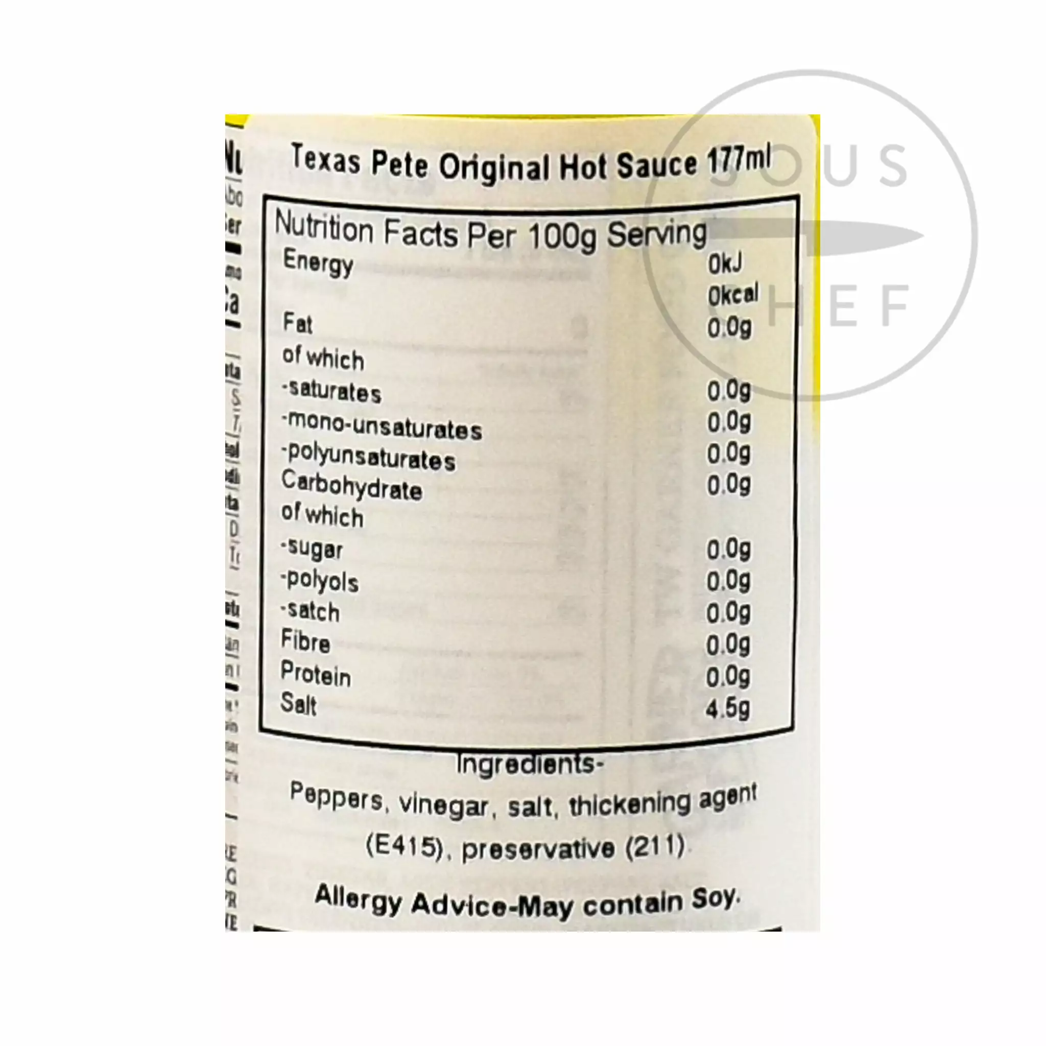 Texas Pete Hot Sauce is a blend of 3 different types of peppers, aged to perfection to bring out the natural, bold chilli pepper flavour. The result is a rich, spicy Texas Pete sauce with strong cayenne overtones.