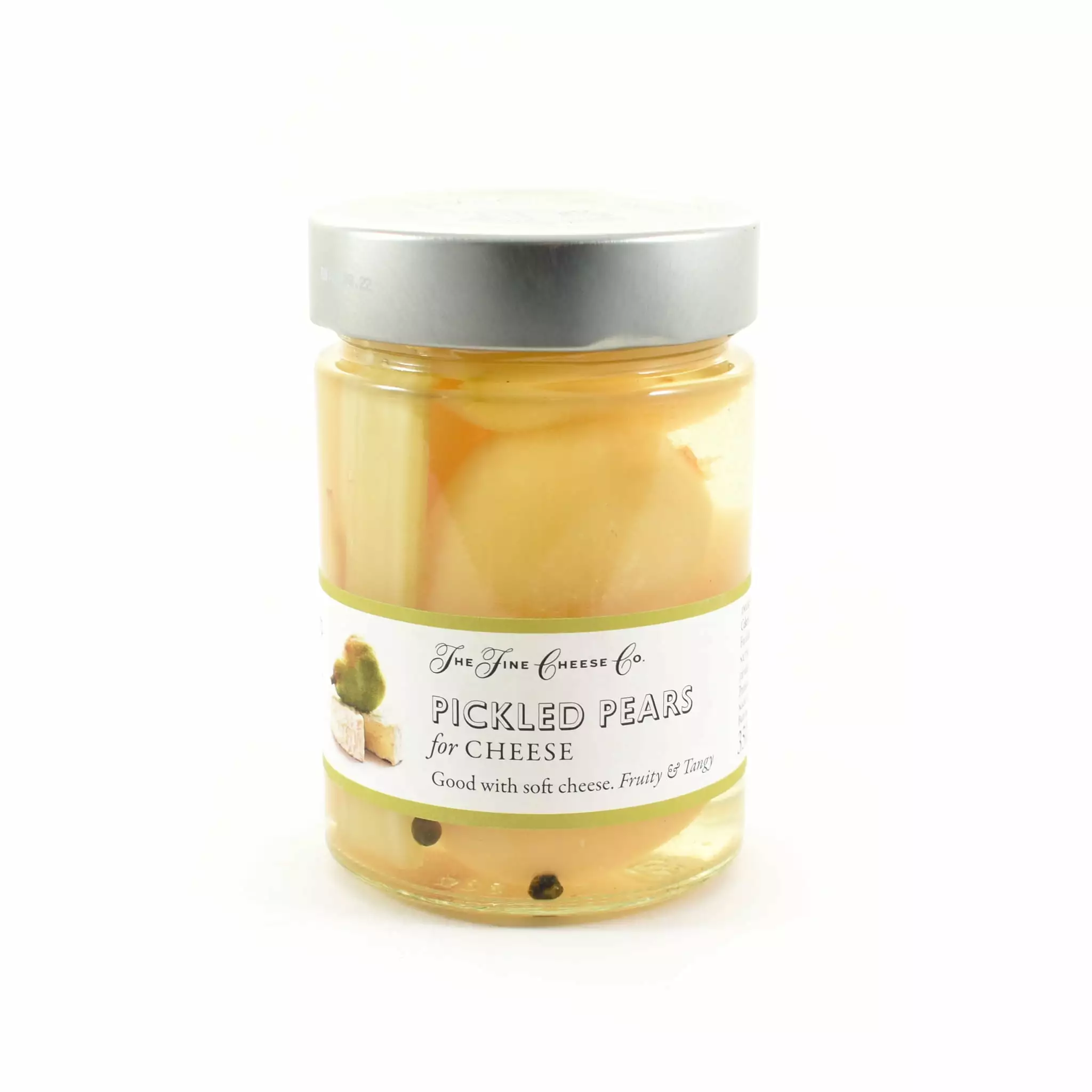 Pickled pears are a slightly savoury, tangy pairing for creamy brie and camembert. Unlike some preserved fruits which are sweet with syrup, these pears are bottled with a combination of white wine vinegar, water, celery, green peppercorns and pickling spice for a sweet, sour flavour.