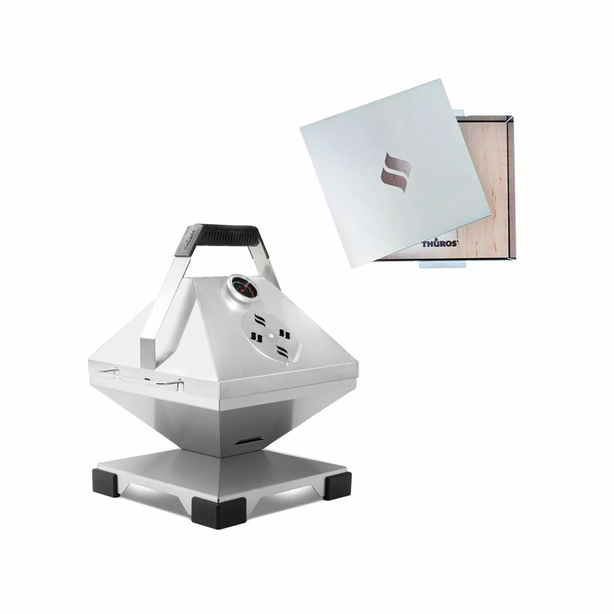 Our Thuros T1 complete set for BBQ smoking provides you with three essential pieces of equipment you need to smoke ribs, salmon and even mozzarella cheese in a small space. The Thuros T1 tabletop range is suitable for using on a table, or on-the-go. The set includes: