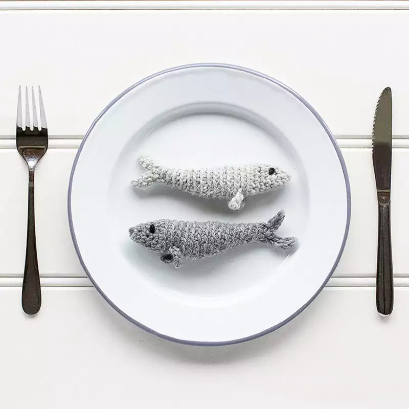Toft sardines in a tin gourmet crochet kit is a crafty gift for seafood lovers. Each tin comes with yarn and an easy-to-follow pattern for making 10 crocheted sardines.