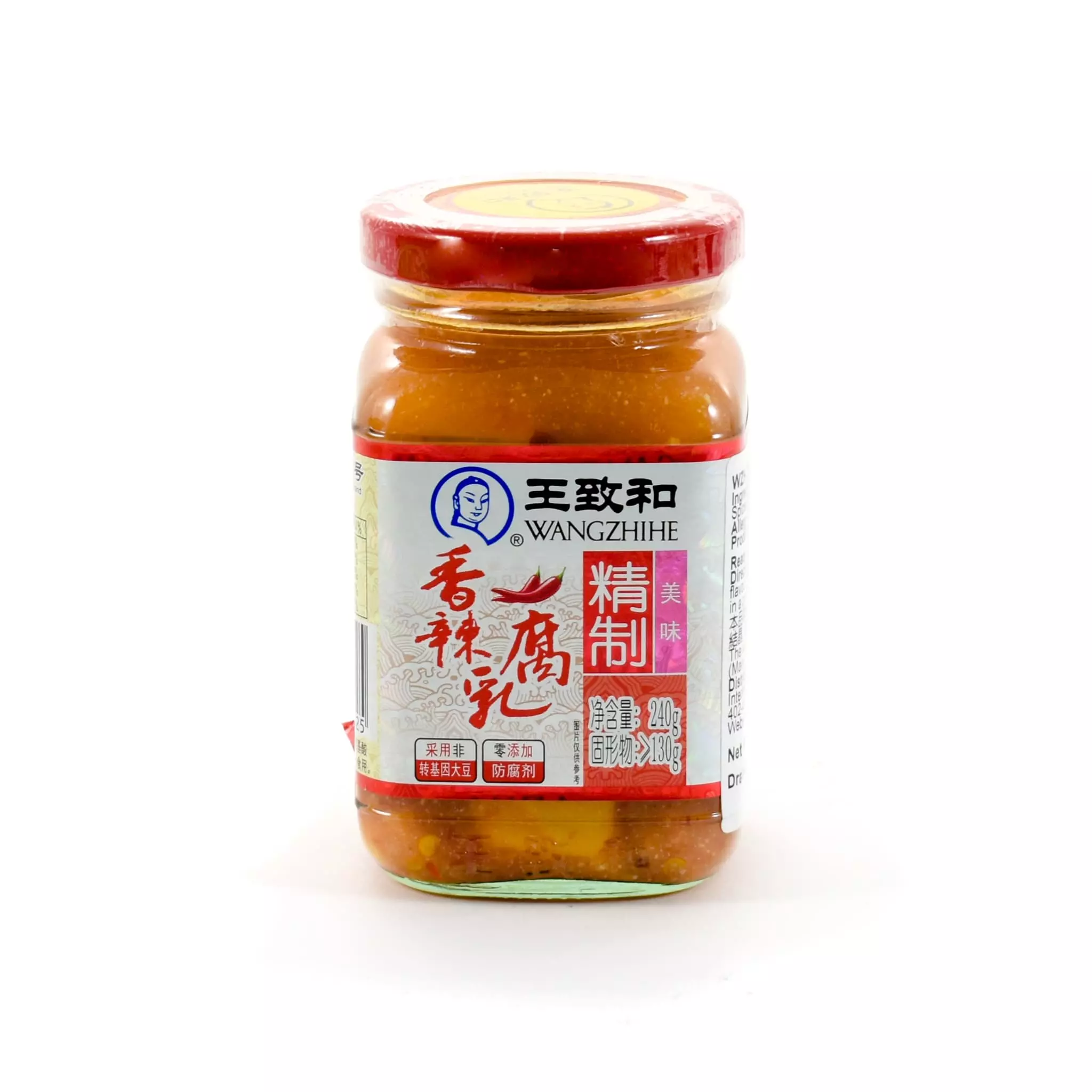 Hot fermented bean curd is a soybean-based preserve used both as a condiment and ingredient in Asian cooking. The red flecks and spicy notes makes this a versatile sauce, chosen over the plain variety by chilli-lovers.